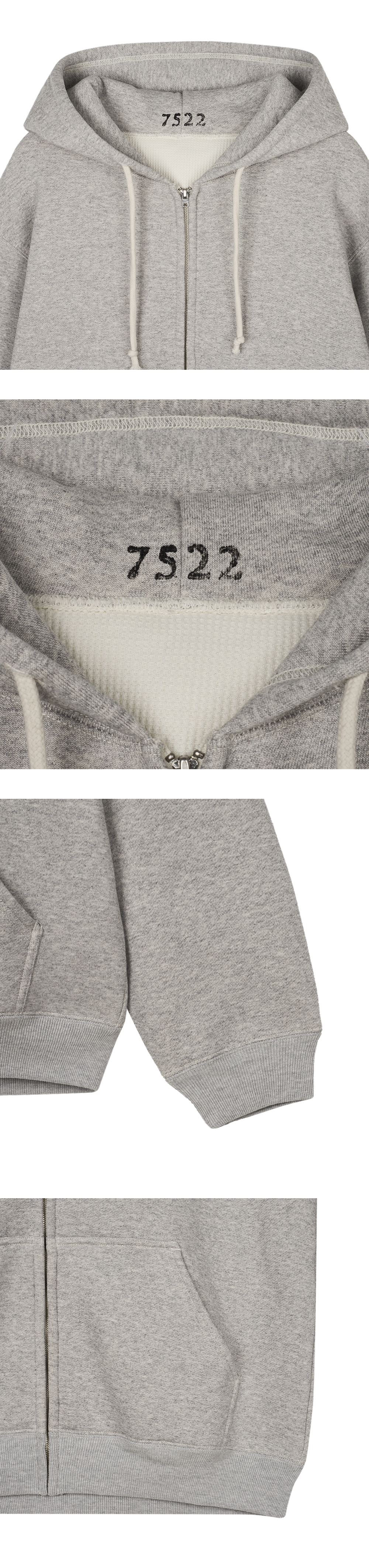 아비렉스 7522 집업 후디 그레이입니다. - 담백한 멜란지 그레이 톤 - 부드러운 코튼 블렌드 소재 - 넥 안쪽 7522 프린팅 - 포근한 와플 안감 - 전면 캥거루 포켓 - 후드 스트링 - 여유로운 핏