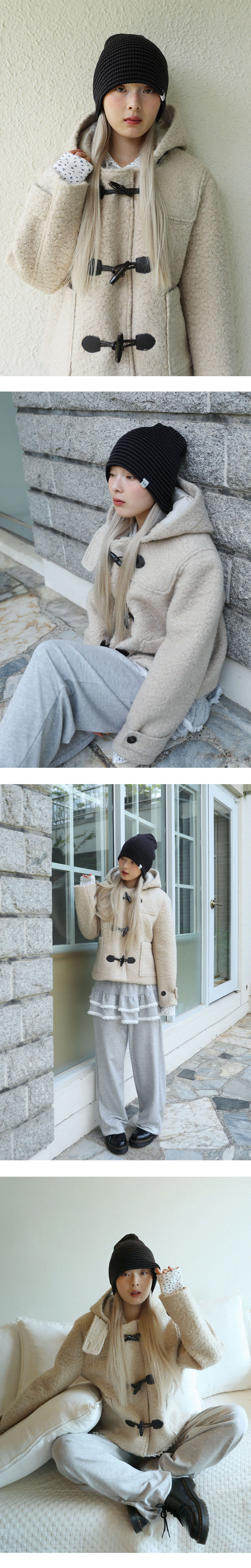 스트라이프 원단을 사용한 롱 비니 입니다.