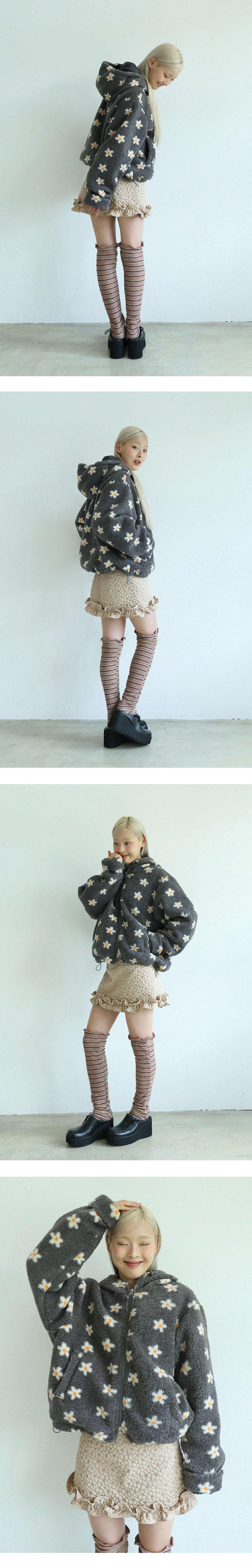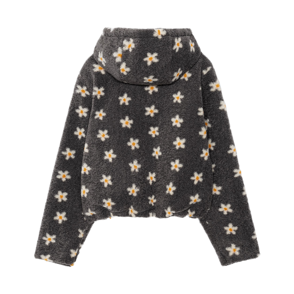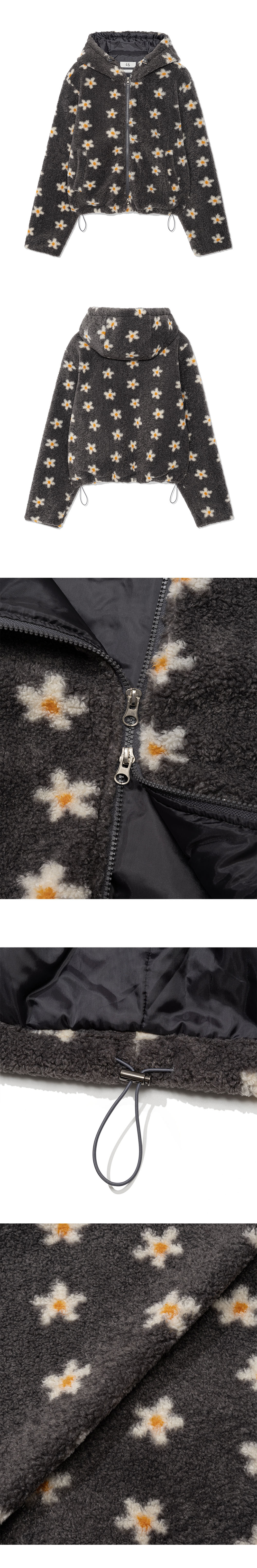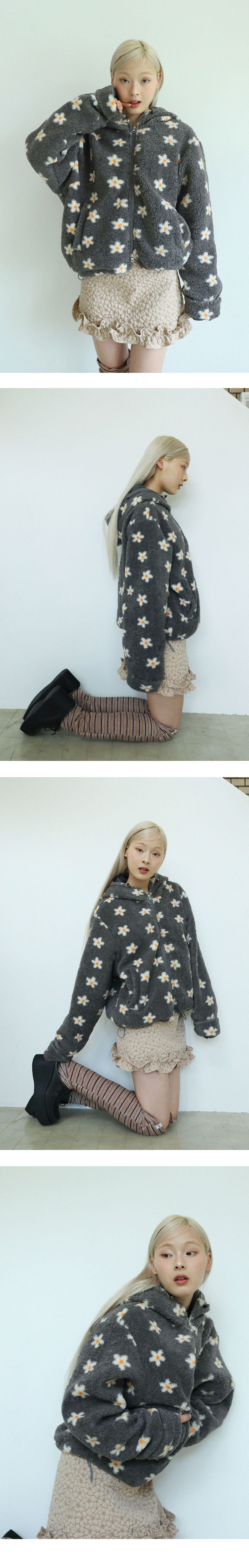 플라워 패턴이 포인트 된 양털 후디 페이크 퍼 점퍼입니다.