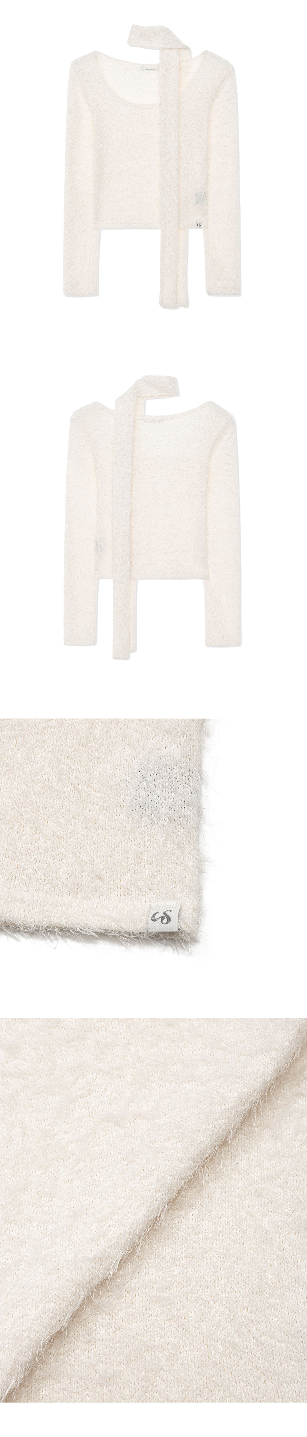 헤어리한 원단을 사용한 티셔츠 입니다. 스카프와 함께 다양한 스타일링 연출이 가능합니다.