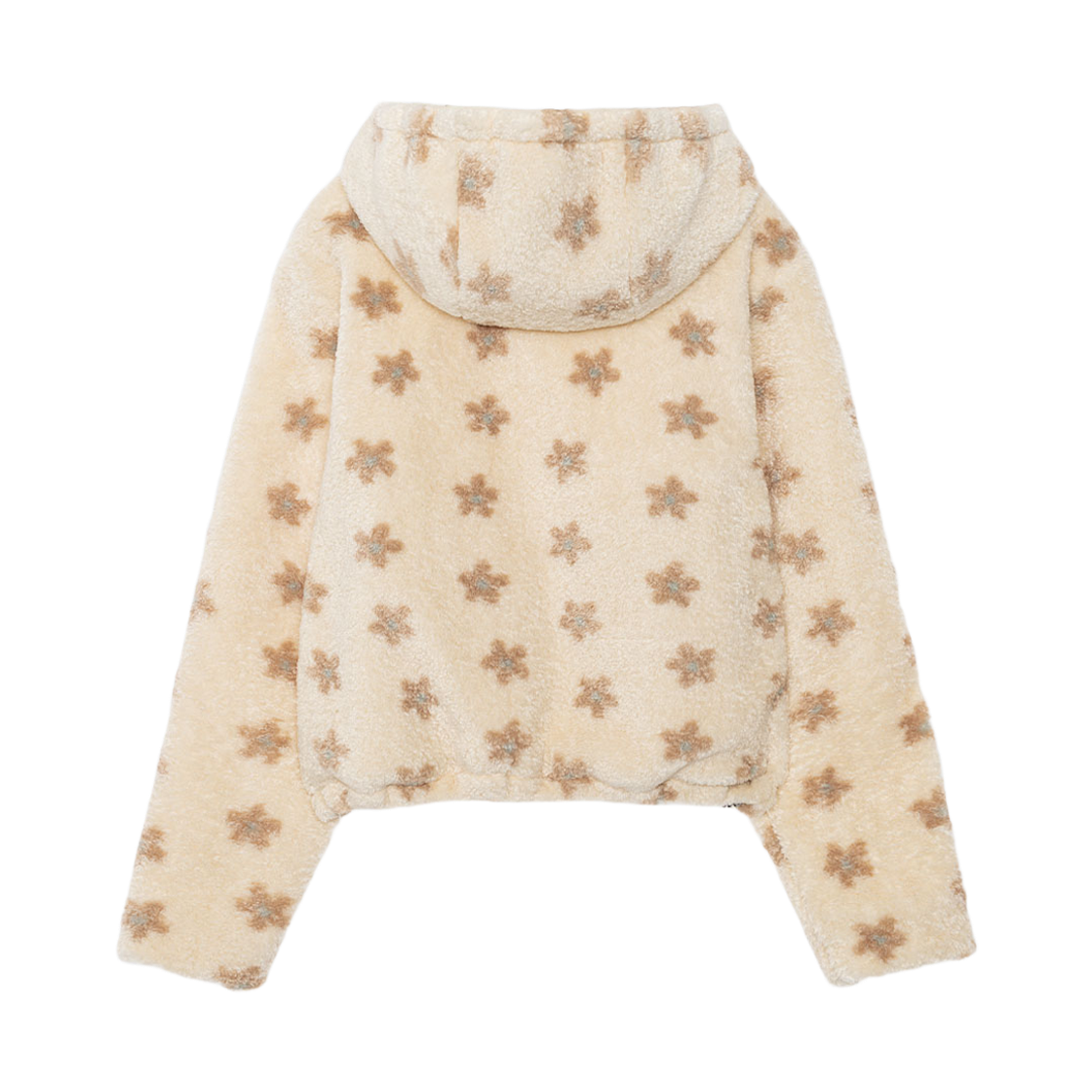 플라워 패턴이 포인트 된 양털 후디 페이크 퍼 점퍼입니다.