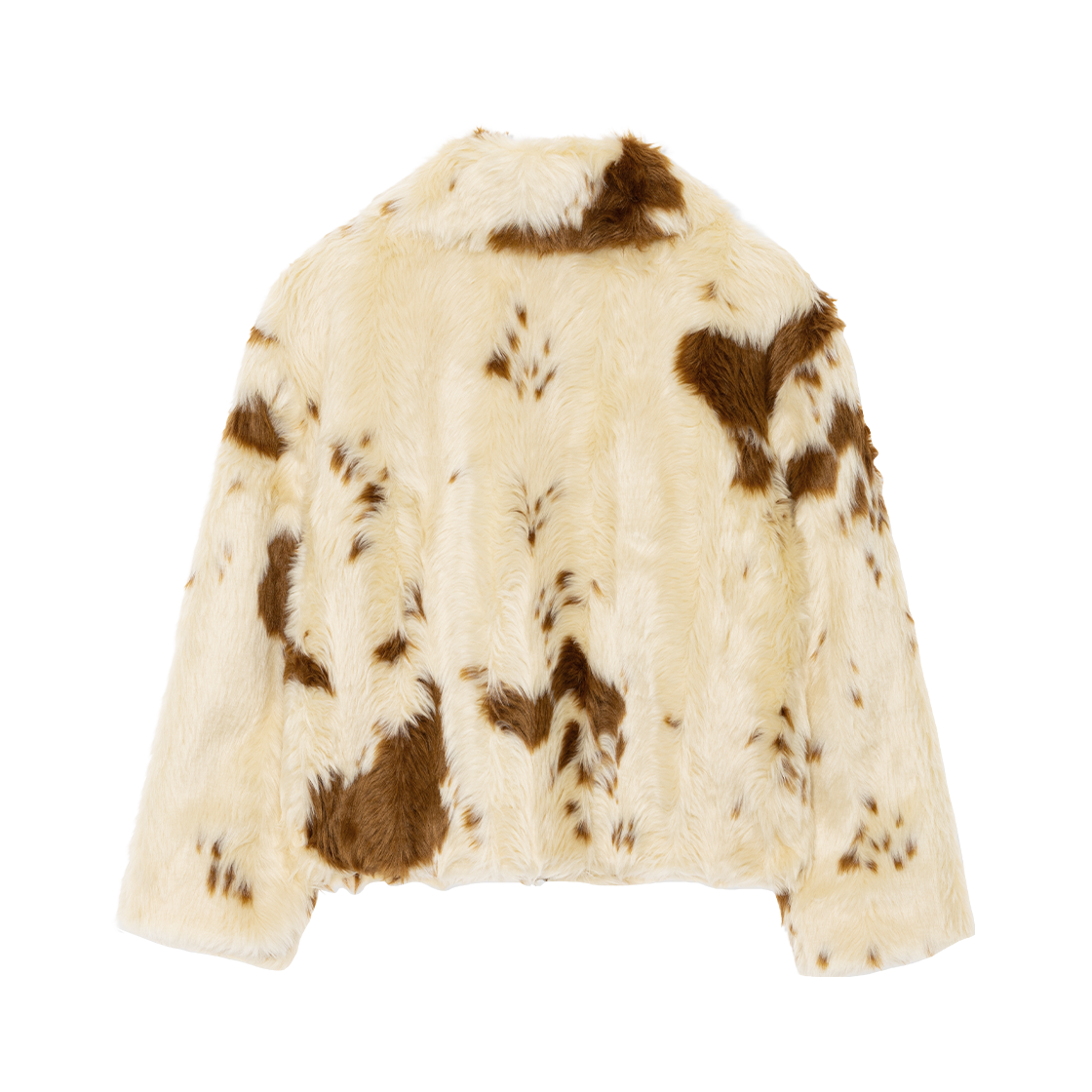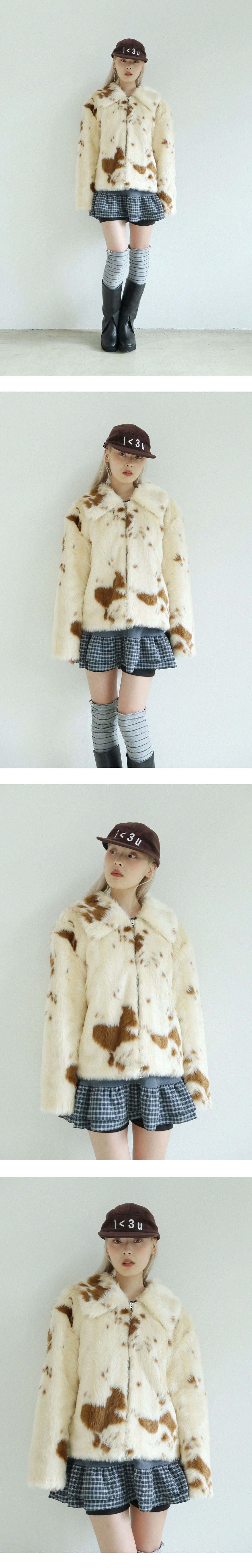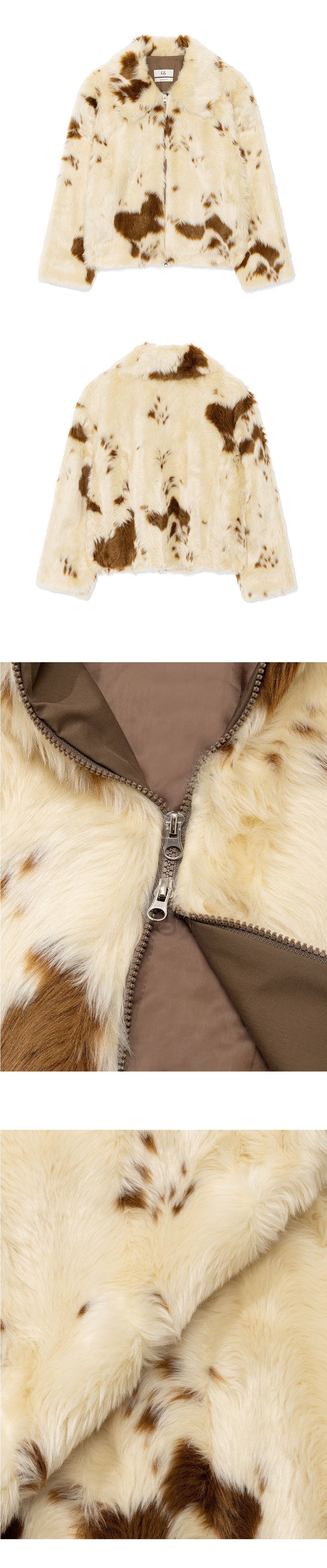 카우 프린트 원단으로 빈티지하고 유니크한 페이크 퍼 재킷입니다.