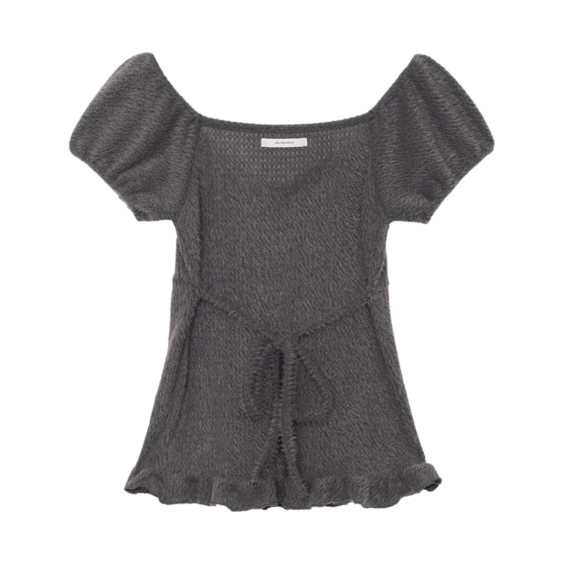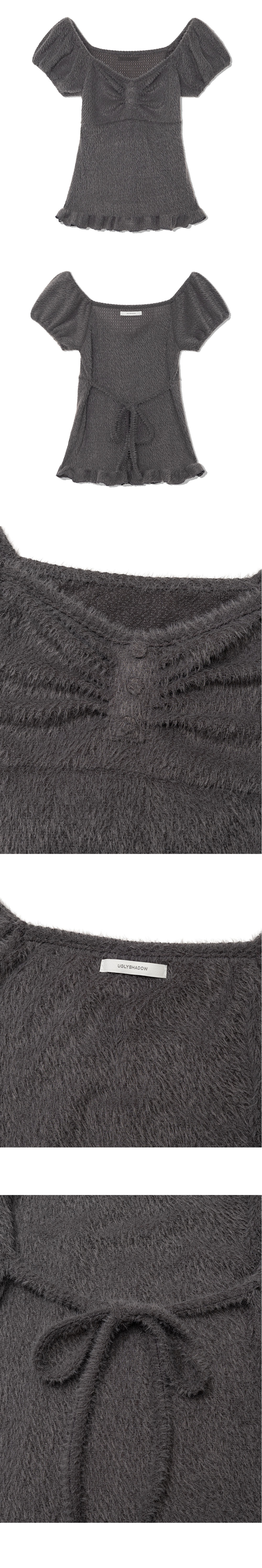 셔링이 포인트 된 앙고라 반팔 티셔츠 입니다.