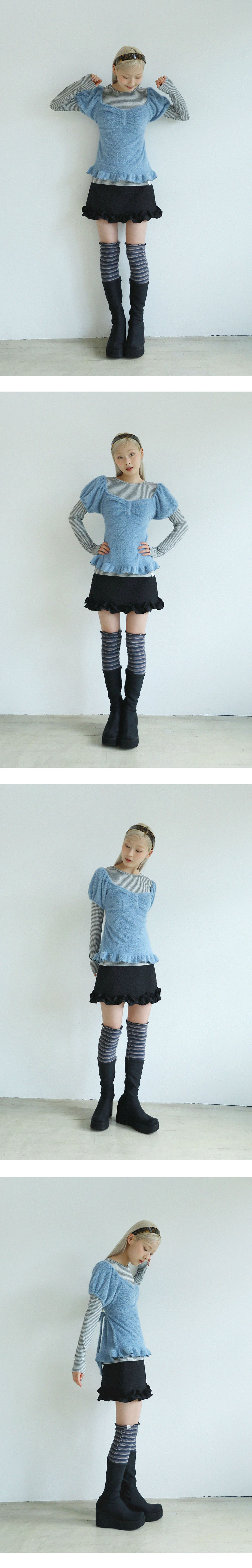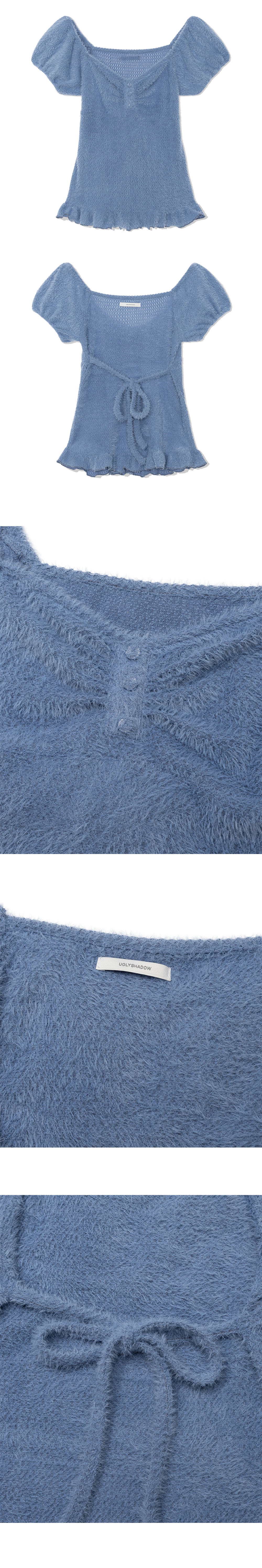 셔링이 포인트 된 앙고라 반팔 티셔츠 입니다.