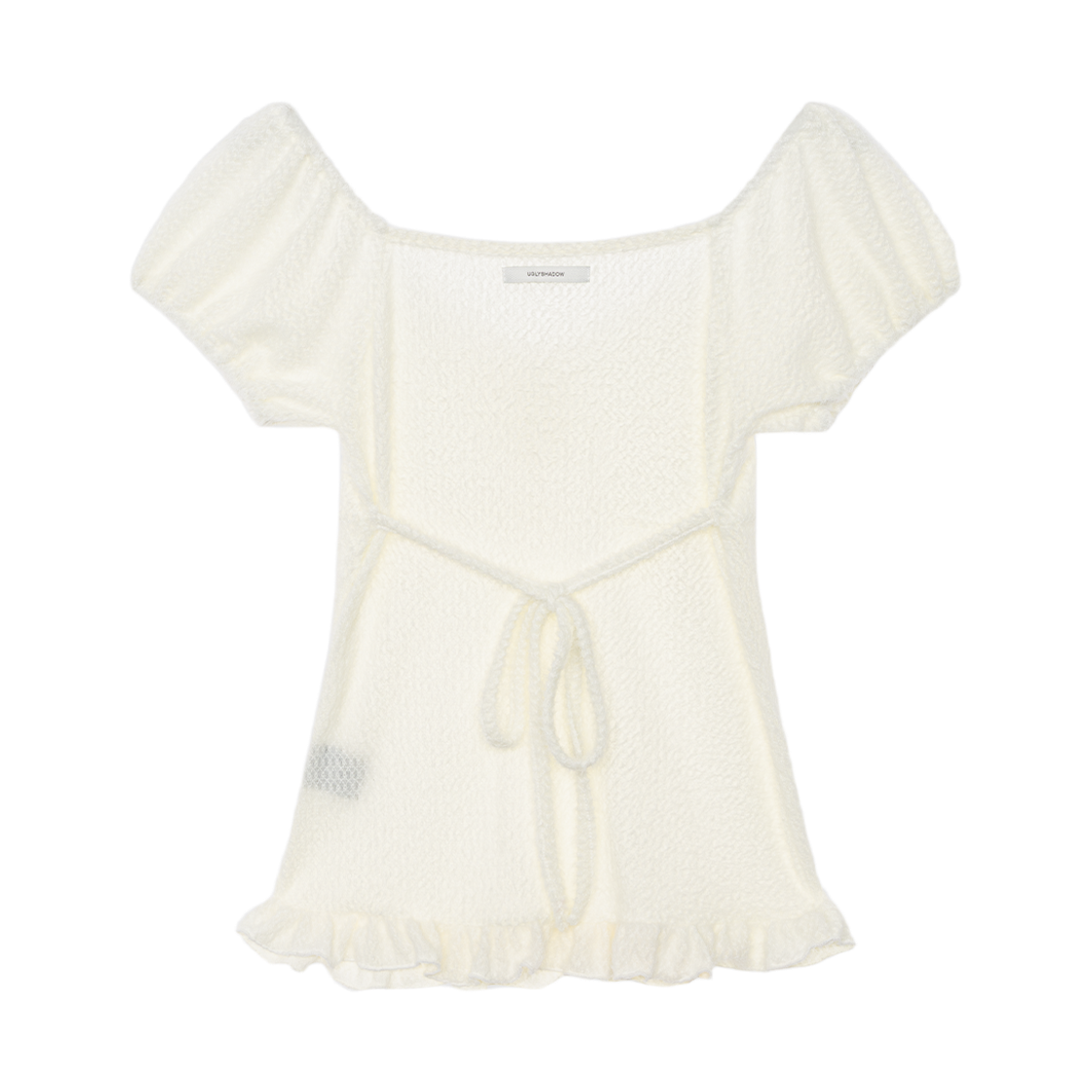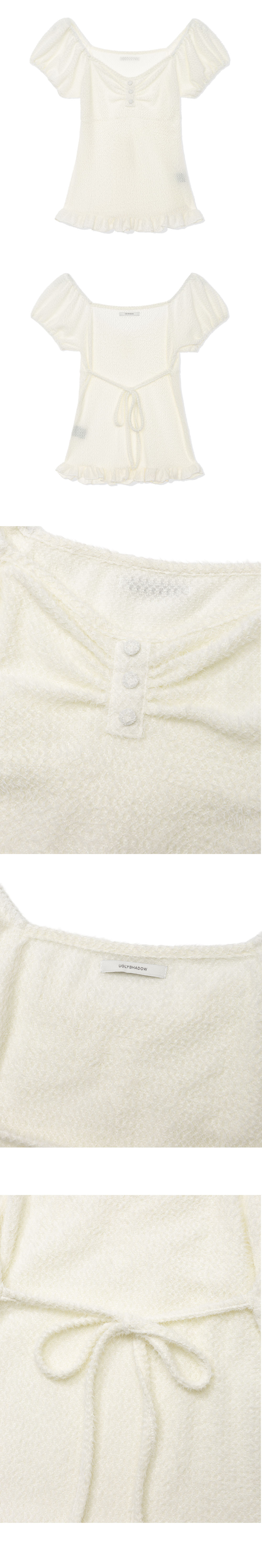셔링이 포인트 된 앙고라 반팔 티셔츠 입니다.