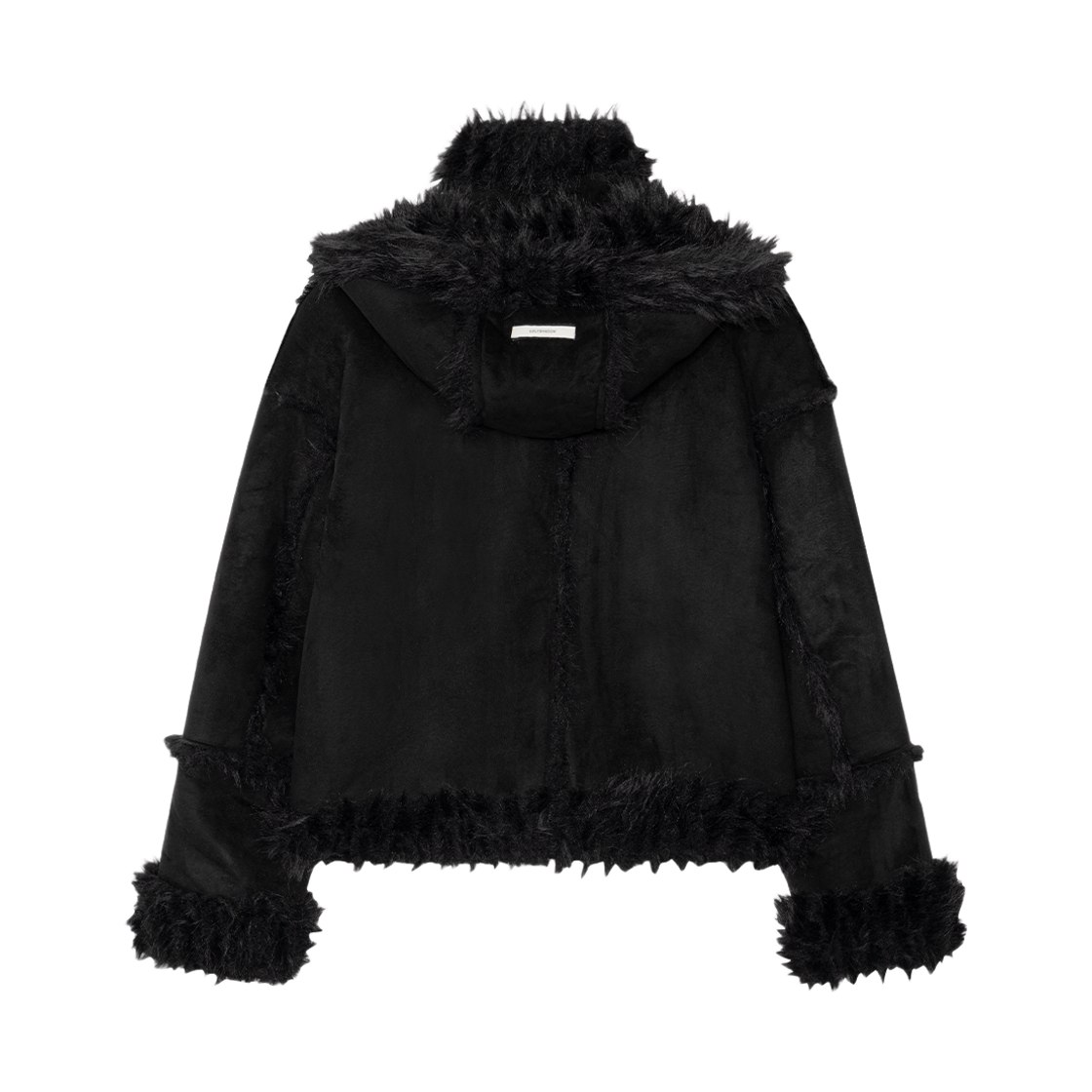 헤어리한 느낌의 페이크 퍼를 사용했으며, 리버시블로 착용 할 수 있는 시어링 자켓 입니다. 후드 탈부착이 가능합니다.