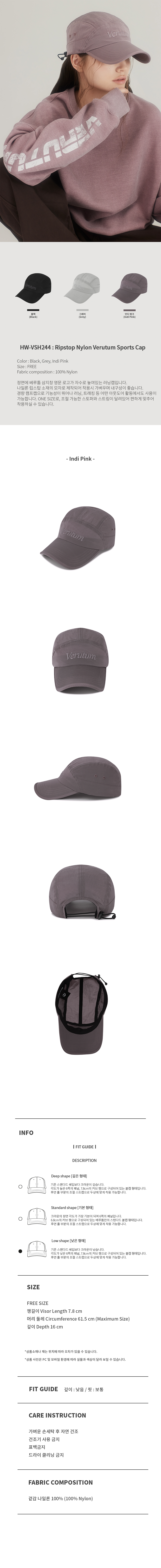 베루툼 립스탑 나일론 베루툼 스포츠 캡 인디 핑크