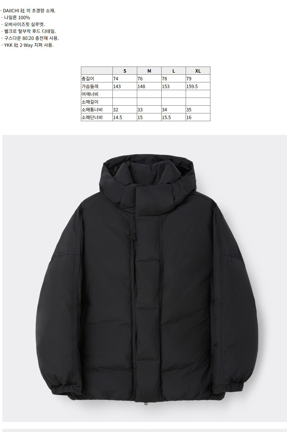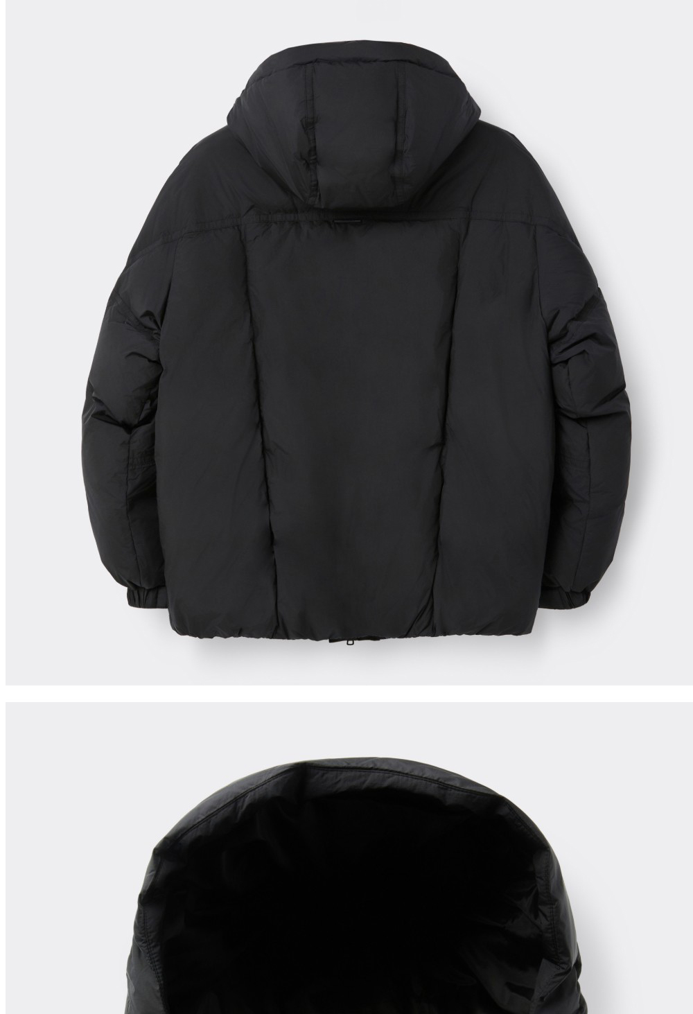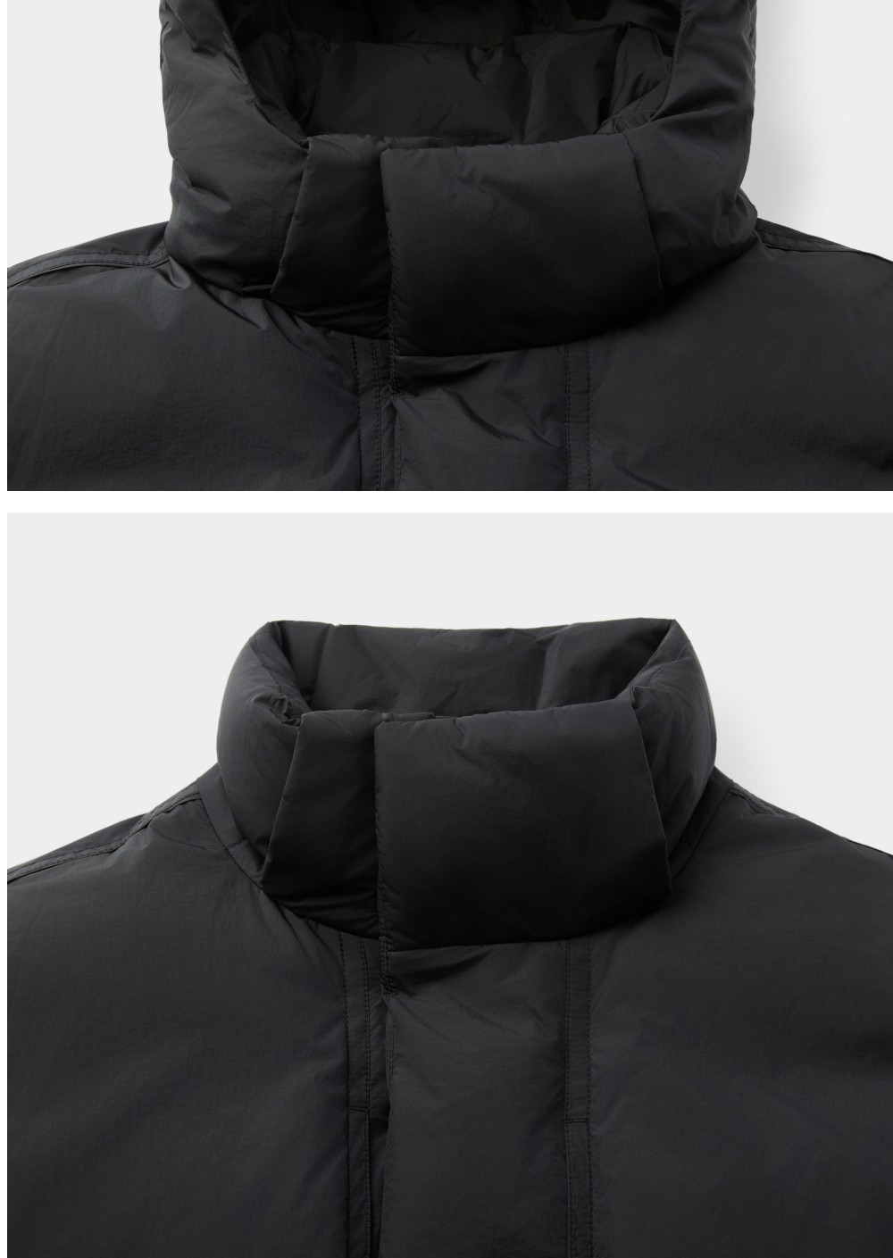 커스텀멜로우 미들 후드 다운 재킷 블랙