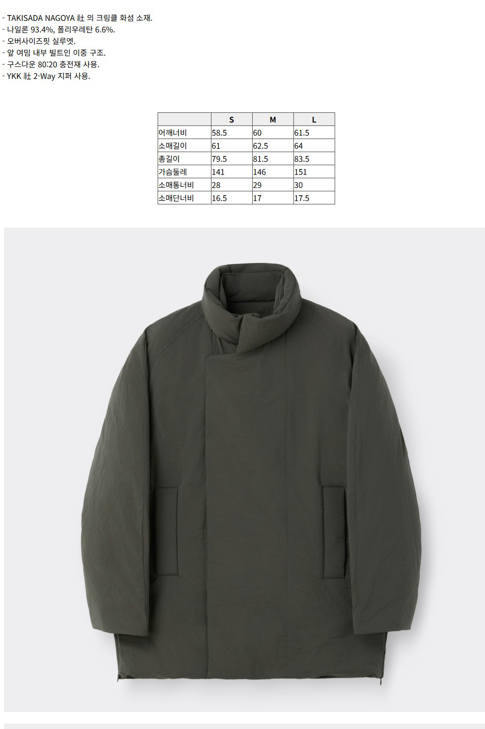 커스텀멜로우 숏 다운 코트 카키