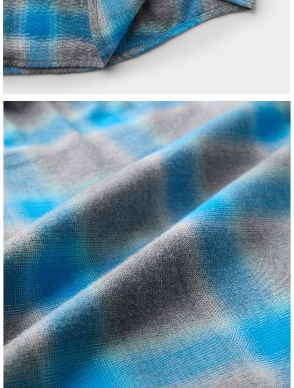 커스텀멜로우 오버사이즈 레이어드 체크 셔츠 블루