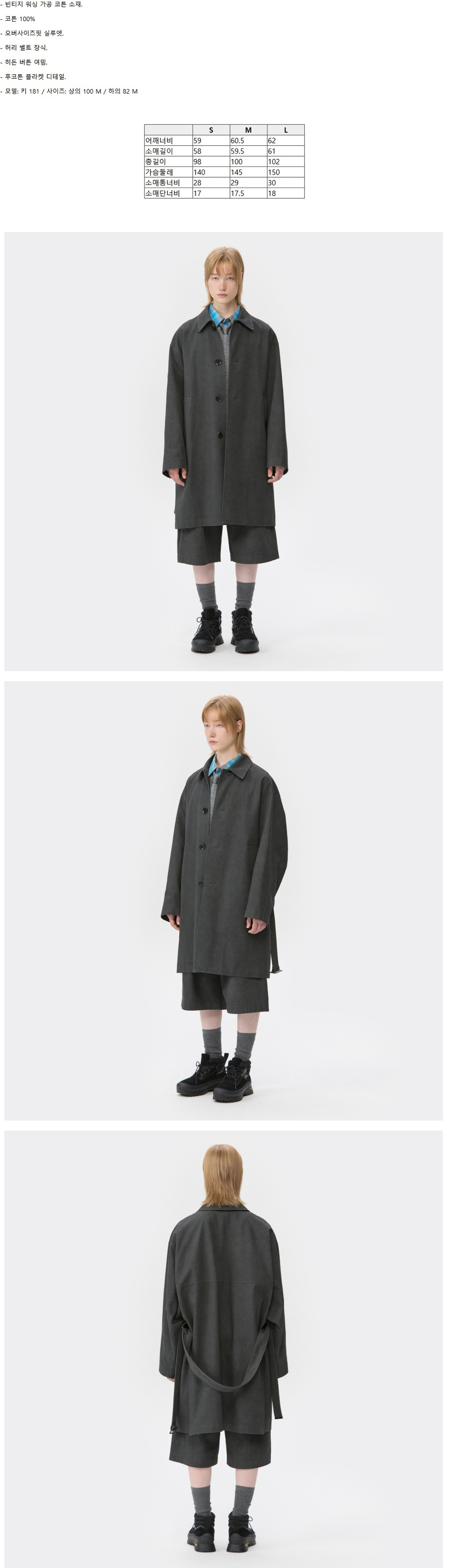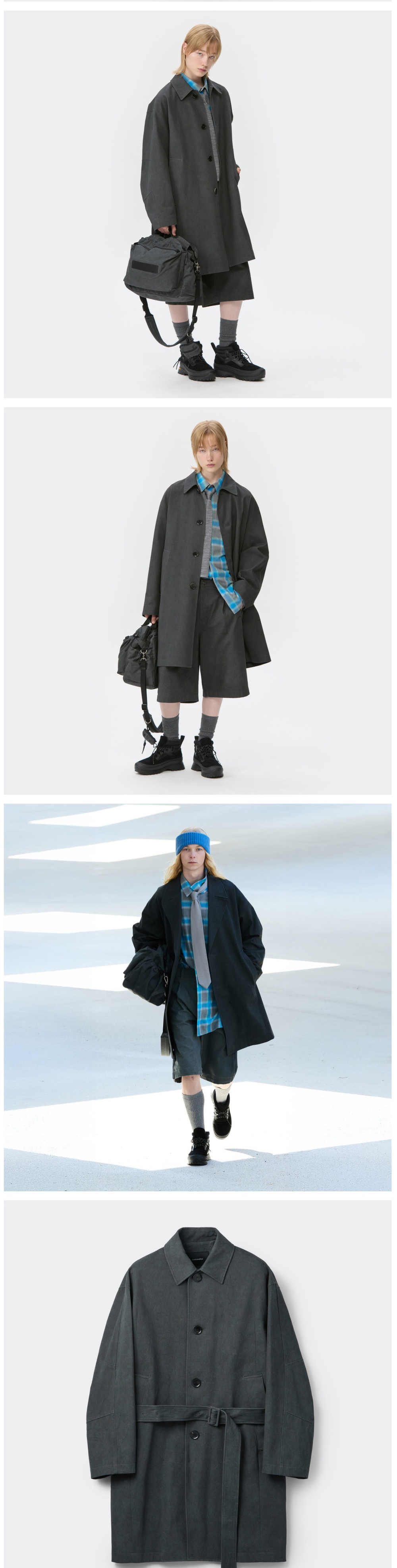 커스텀멜로우 벨티드 맥 코트 다크 그레이