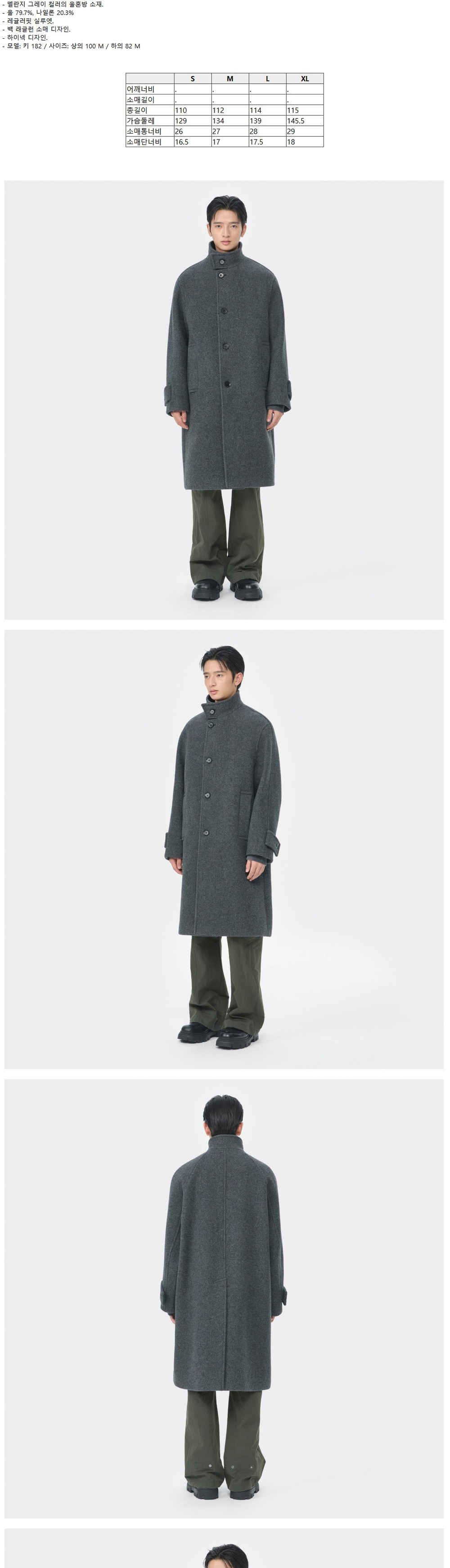 커스텀멜로우 울 하이넥 코트 다크 그레이