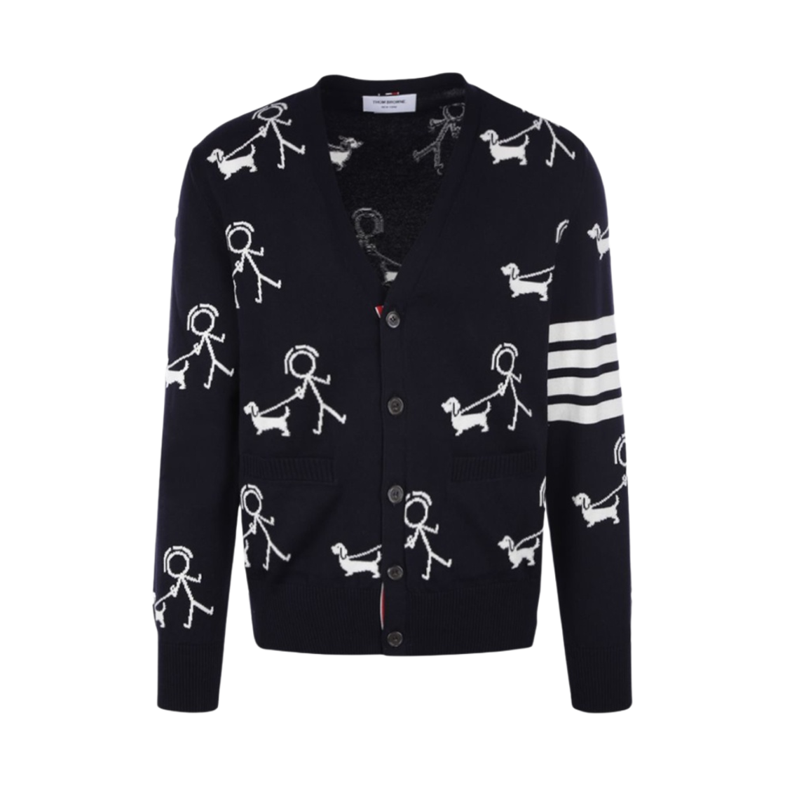 Thom Browne Cotton Mr.Thom 4-Bar Half V-Neck Cardigan Navy
