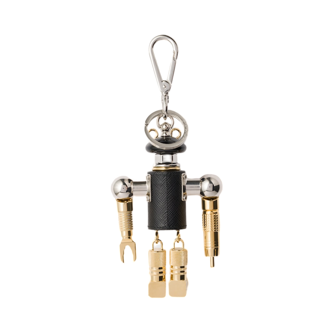 Prada Robot Saffiano Leather Key Ring Charm Black