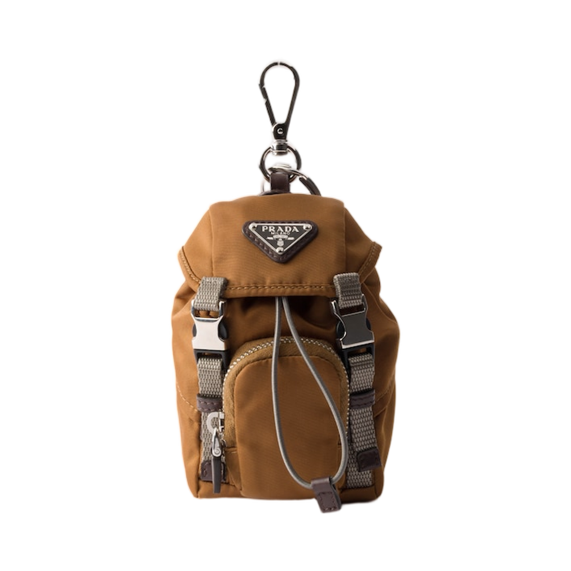 Prada Mini Icon Re-Nylon and Leather Keychain Charm Brandy