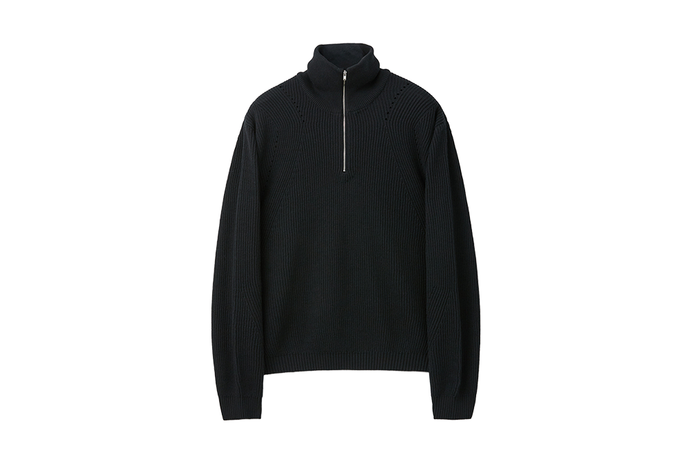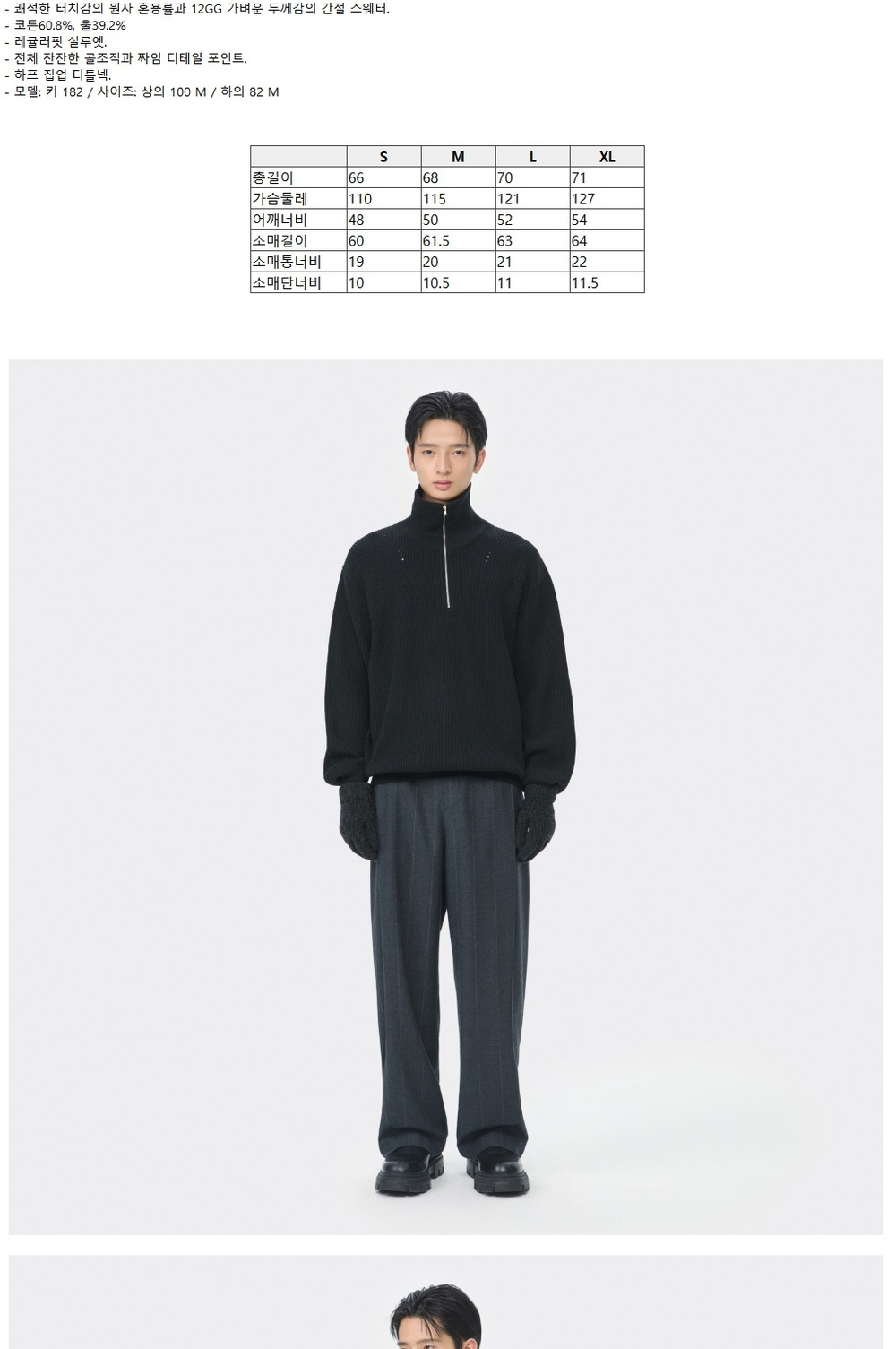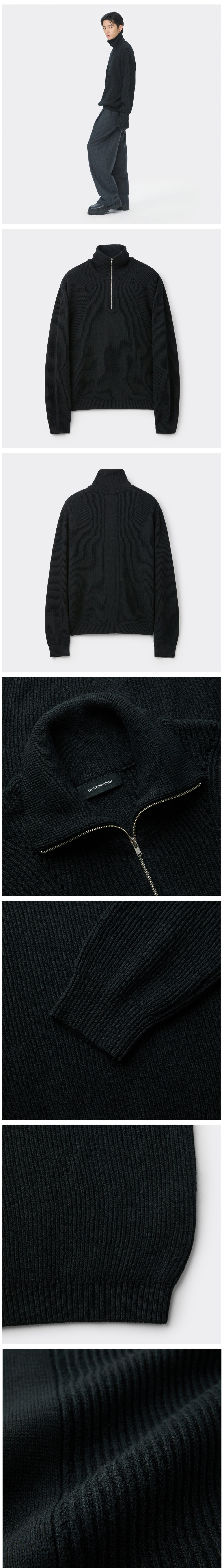 커스텀멜로우 터틀넥 하프 집 스웨터 블랙