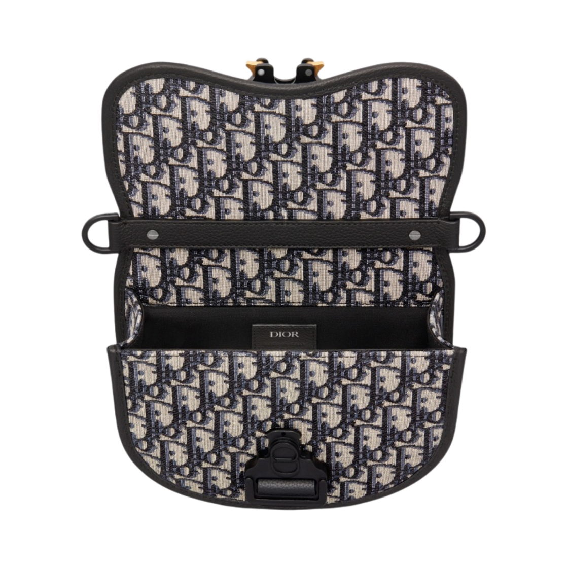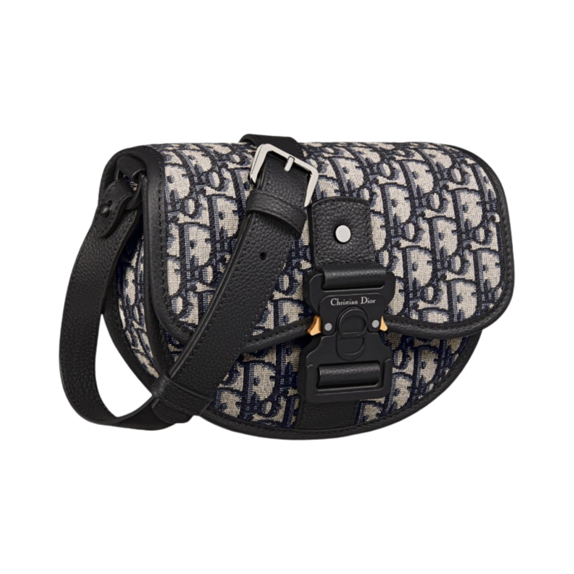디올 갤럽 미니 메신저백 블랙 그레인드 카프스킨 베이지 & 블랙 디올 오블리크 자카드