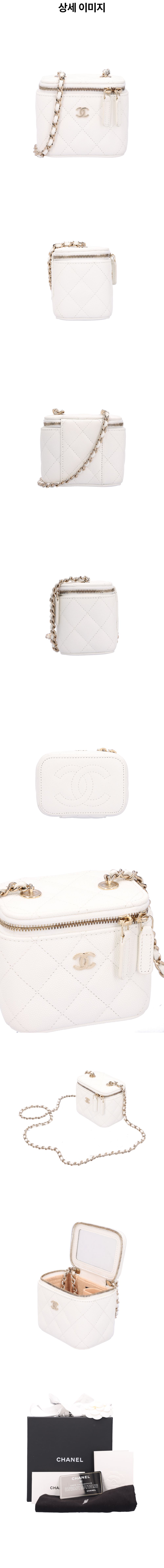 샤넬 AP1340 클래식 스몰 체인 코스메틱 케이스 그레인드 카프스킨 화이트 금장