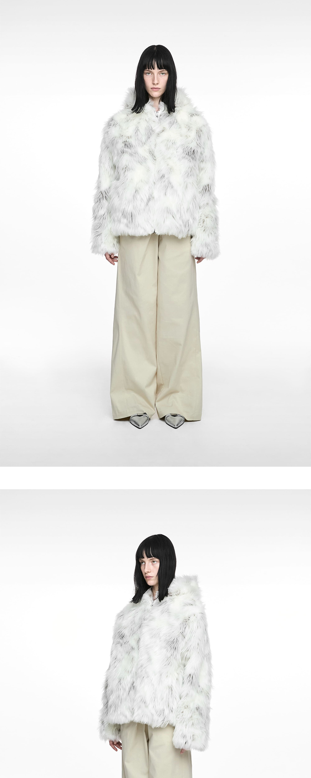 나체 우먼 리버시블 후디 포우 퍼 자켓 크림 - 25FW