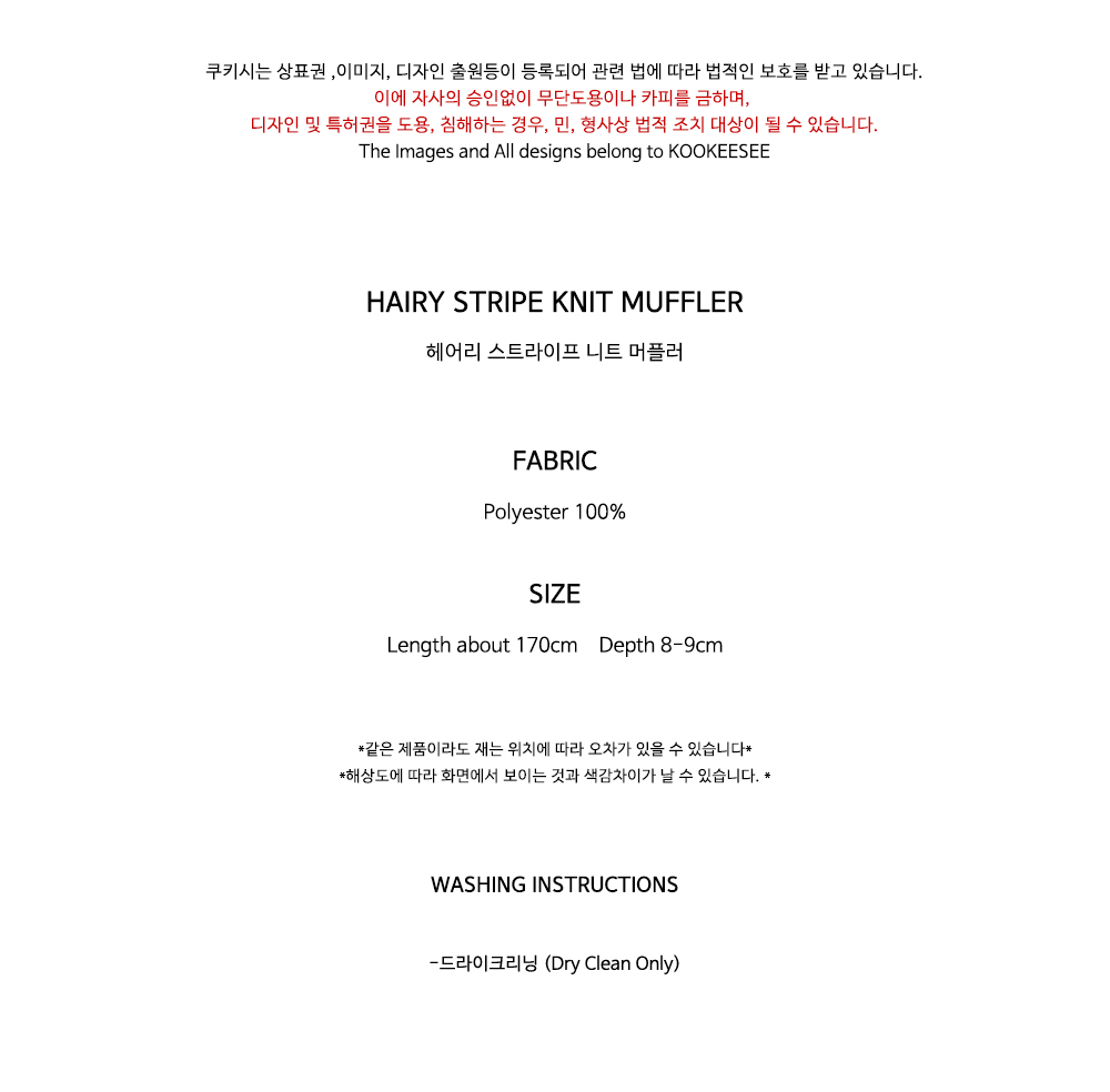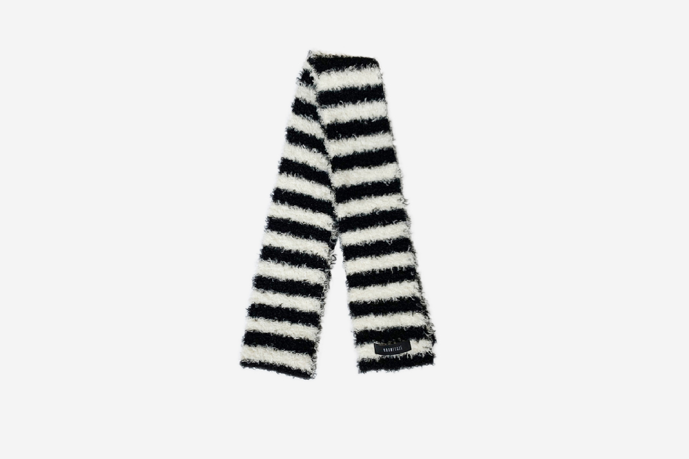 쿠키시 헤어리 스트라이프 니트 머플러 아이보리/블랙
