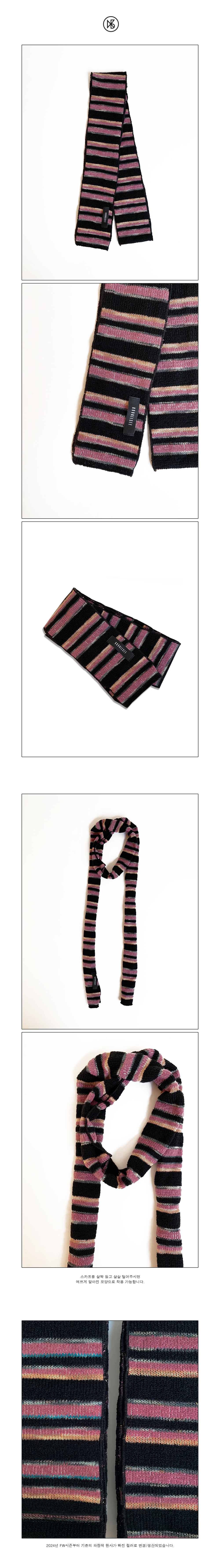 Vintage Stripe Knit Muffler FABRIC Poly 50% Acrylic 50% SIZE -원사이즈 총장 약 170cm, 너비 약 8-9cm *같은 제품이라도 재는 위치에 따라 오차가 있을 수 있습니다* *해상도에 따라 화면에서 보이는 것과 색감차이가 날 수 있습니다. * WASHING INSTRUCTIONS -드라이 크리닝 또는 찬물세탁, 손세탁