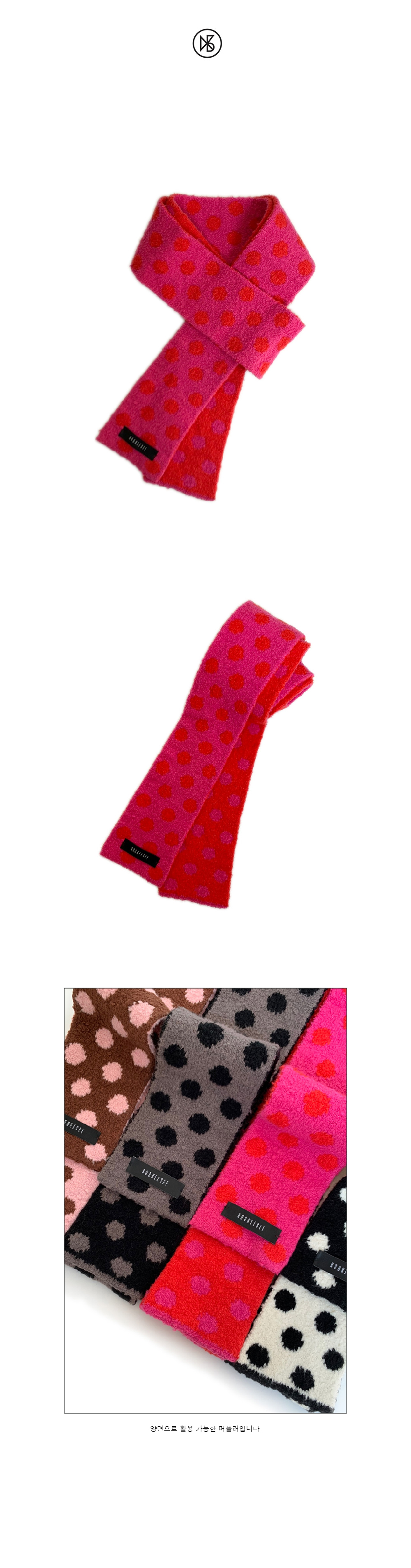 Dot Two Tone Muffler FABRIC Cotton 79%, Nylon 19%, Span 2% DETAIL - 양면 두컬러로 활용 가능한 도트 니트 머플러 SIZE -기장 약 170cm, 너비 약 8-9cm *같은 제품이라도 재는 위치에 따라 오차가 있을 수 있습니다* *해상도에 따라 화면에서 보이는 것과 색감차이가 날 수 있습니다. * WASHING INSTRUCTIONS -드라이크리닝