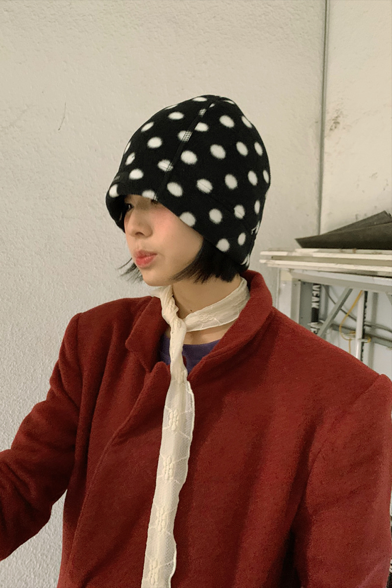 Dot Beanie Hat FABRIC Polyester 100% DETAIL -양면덤블 폴라플리스 원단 -전체 갈라삼봉 스티치 SIZE -원사이즈 높이 23cm, 밑단둘레 60cm *같은 제품이라도 재는 위치에 따라 오차가 있을 수 있습니다* *해상도에 따라 화면에서 보이는 것과 색감차이가 날 수 있습니다. * WASHING INSTRUCTIONS -드라이 크리닝 또는 찬물세탁 Model Sungmi, Height 163cm