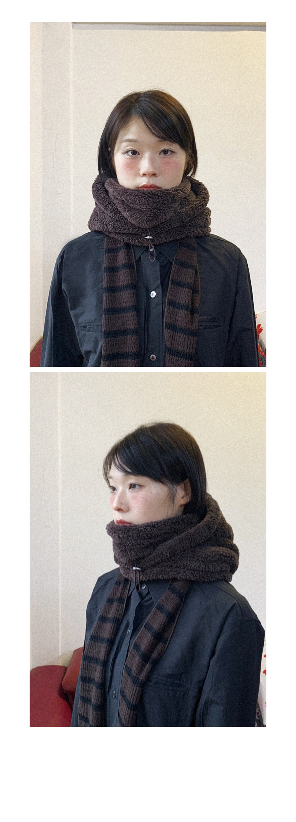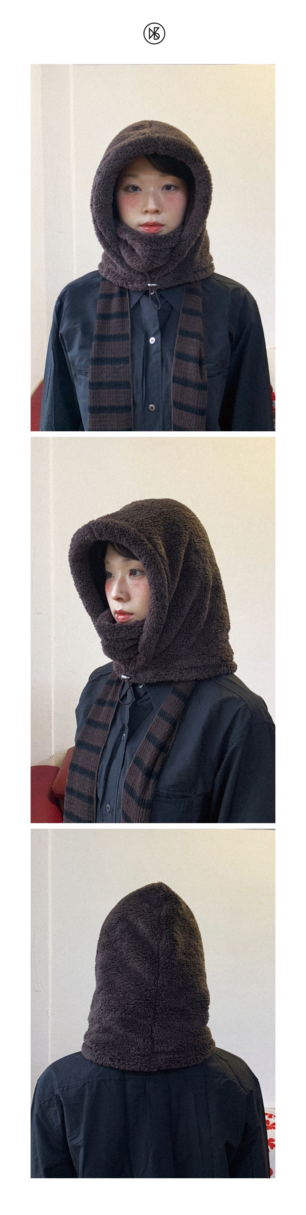 Boa Fleece Balaclava FABRIC Polyester 100% DETAIL -양면덤블 보아플리스 원단 -후드 안쪽 넥워머 있음 -스트링 조절 SIZE -원사이즈 높이 38cm, 밑단둘레(단면) 30cm *같은 제품이라도 재는 위치에 따라 오차가 있을 수 있습니다* *해상도에 따라 화면에서 보이는 것과 색감차이가 날 수 있습니다. * WASHING INSTRUCTIONS -드라이 크리닝 또는 찬물세탁 Model SungMi, Height 163cm