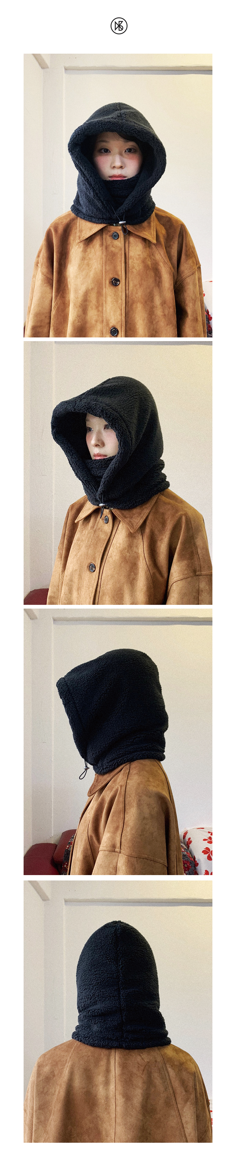Boa Fleece Balaclava FABRIC Polyester 100% DETAIL -양면덤블 보아플리스 원단 -후드 안쪽 넥워머 있음 -스트링 조절 SIZE -원사이즈 높이 38cm, 밑단둘레(단면) 30cm *같은 제품이라도 재는 위치에 따라 오차가 있을 수 있습니다* *해상도에 따라 화면에서 보이는 것과 색감차이가 날 수 있습니다. * WASHING INSTRUCTIONS -드라이 크리닝 또는 찬물세탁 Model SungMi, Height 163cm