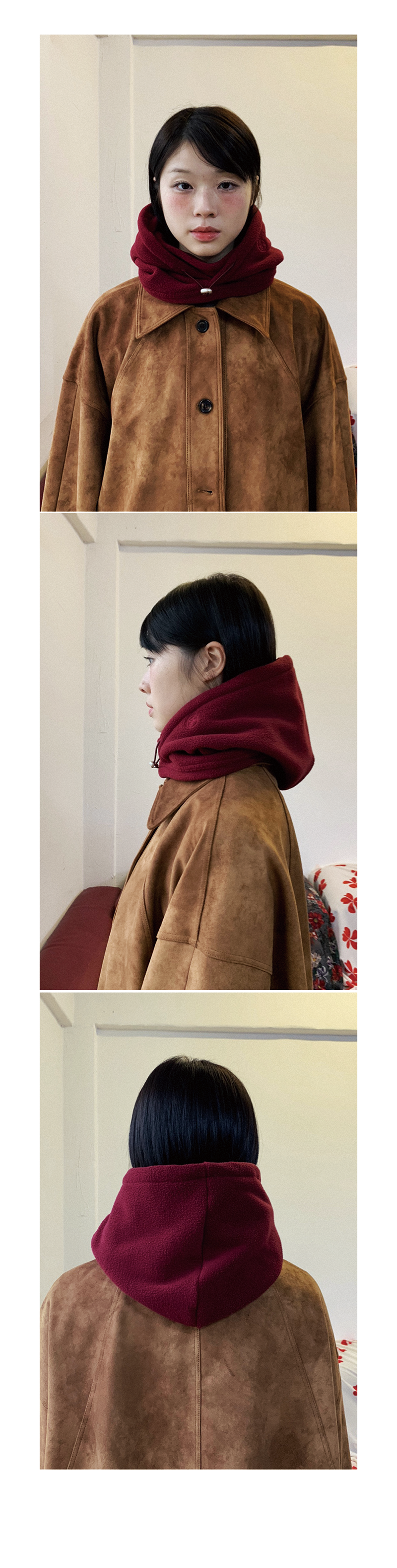 PolarFleece Balaclava FABRIC Polyester 100% DETAIL -양면덤블 폴라플리스 원단 -왼쪽 쿠키시 로고 자수 -후드 안쪽 넥워머있음 -스트링 조절 SIZE -원사이즈 높이 37cm, 밑단 28cm *같은 제품이라도 재는 위치에 따라 오차가 있을 수 있습니다* *해상도에 따라 화면에서 보이는 것과 색감차이가 날 수 있습니다. * WASHING INSTRUCTIONS -드라이 크리닝