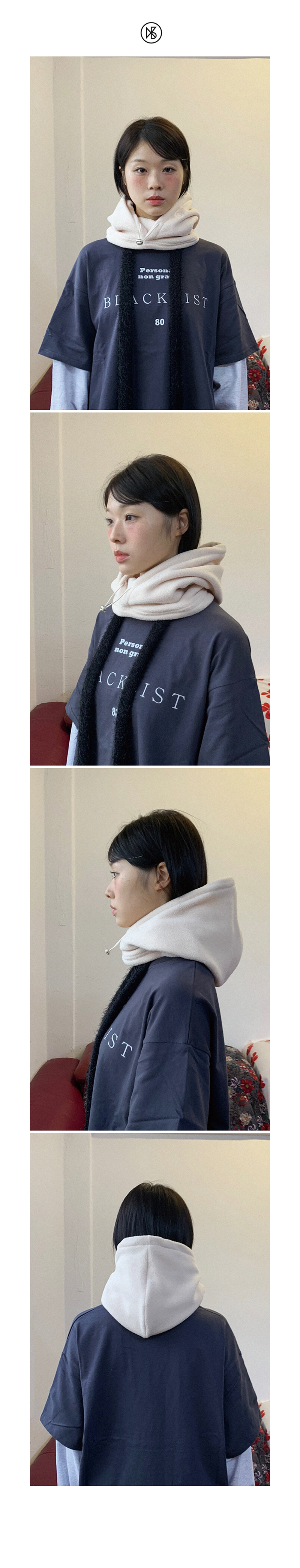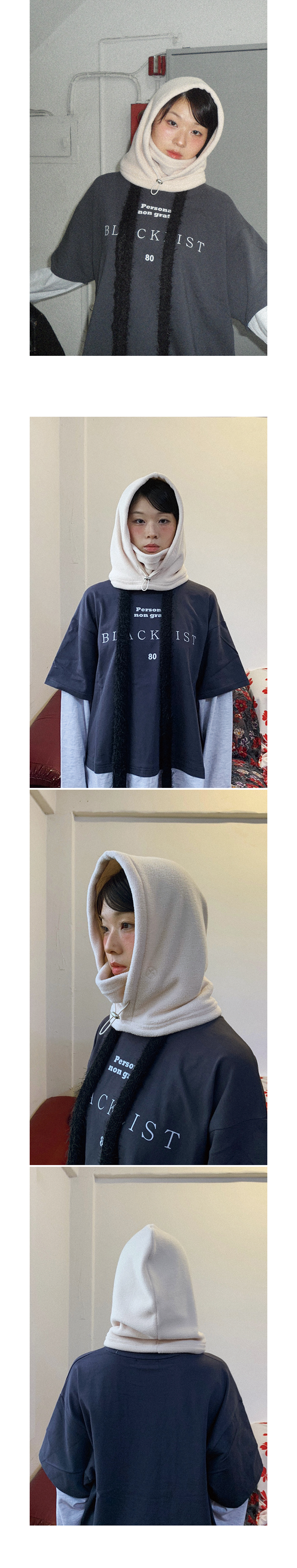PolarFleece Balaclava FABRIC Polyester 100% DETAIL -양면덤블 폴라플리스 원단 -왼쪽 쿠키시 로고 자수 -후드 안쪽 넥워머있음 -스트링 조절 SIZE -원사이즈 높이 37cm, 밑단 28cm *같은 제품이라도 재는 위치에 따라 오차가 있을 수 있습니다* *해상도에 따라 화면에서 보이는 것과 색감차이가 날 수 있습니다. * WASHING INSTRUCTIONS -드라이 크리닝