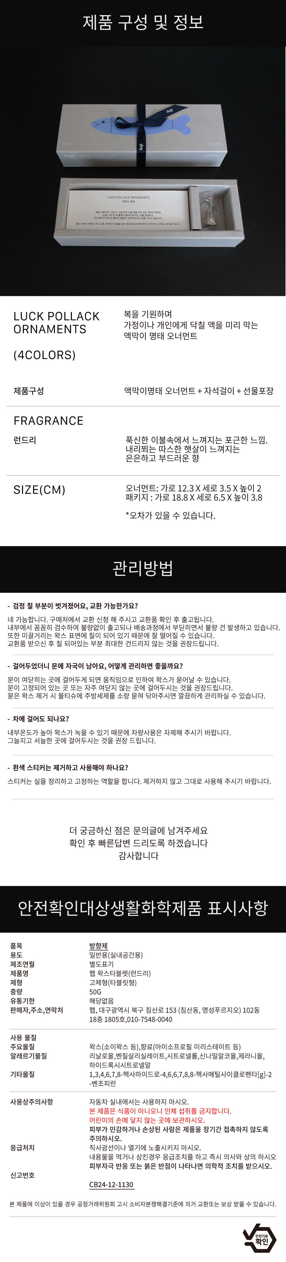 [사은품 증정] [선물 포장] 햅 액막이 명태 오너먼트 아이보리