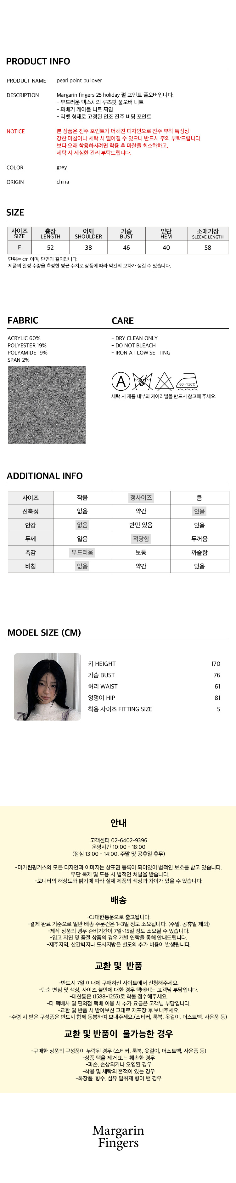마가린핑거스 펄 포인트 풀오버 그레이