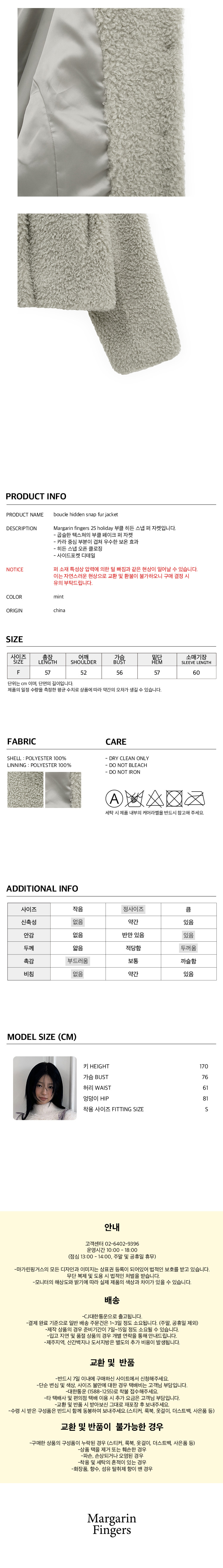 마가린핑거스 부클 히든 스냅 퍼 자켓 민트