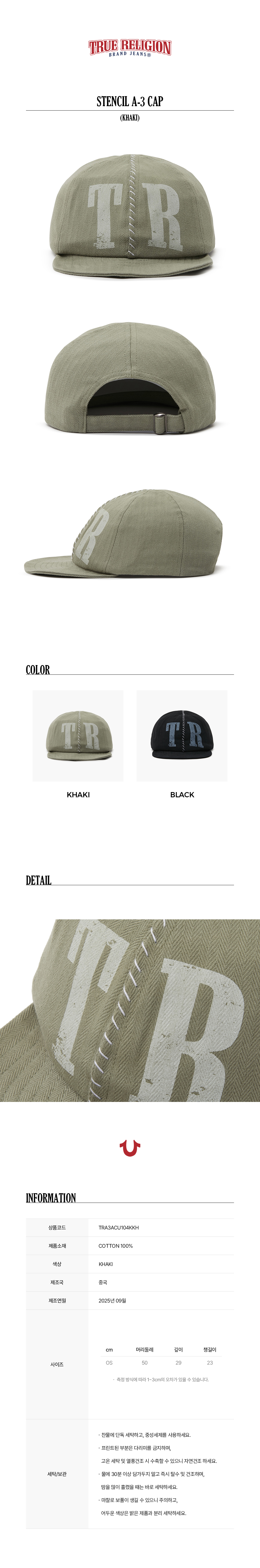 트루릴리젼 스텐실 A-3 캡_카키
