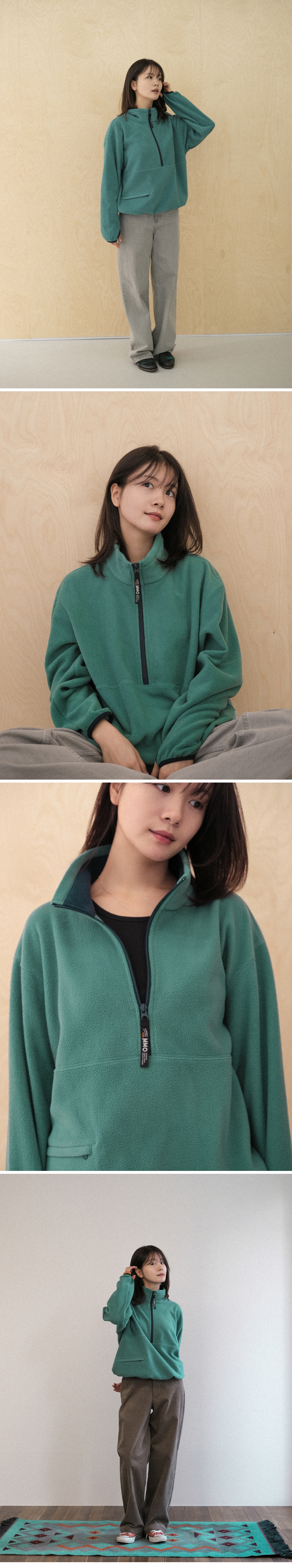 - 가볍고 포근하며 보온성이 좋은 플리스 소재의 아노락 - 여유로운 하프넥 구조와 밑단 스트링 디테일 - 지퍼 라인, 소매 랍바, 넥 안감의 컬러 배색 - 입고 벗기 편한 적당한 길이의 지퍼 여밈과 전면 하단의 포켓 디테일 - 빈티지한 무드를 더해주는 지퍼 플러 포인트 - 핸드 워머 역할을 하는 핑거홀 - 왼쪽 소매단의 에메모 페이스 자수와 뒷목 지그재그 로고 자수 디테일 아웃도어에서 일상까지 따뜻하고 포근하게 - 색상 터콰이즈 블루 모델 w 162 / 43 (상의 1) m 176 / 65 (상의 3)