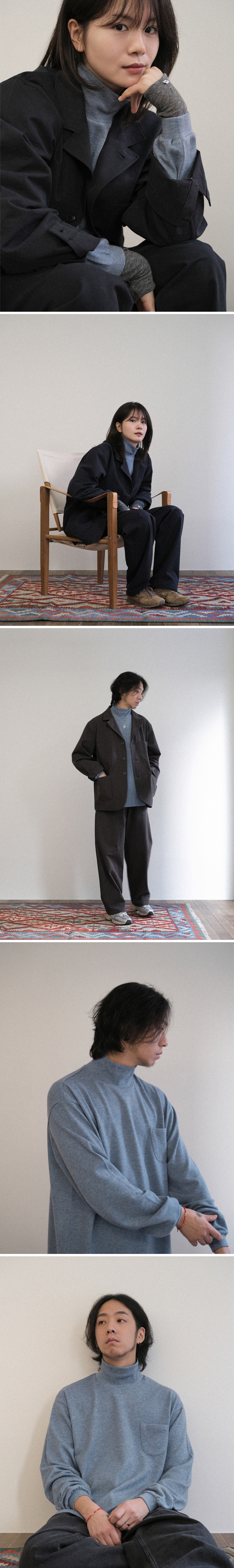 - 보온성과 신축성이 좋고, 촉감이 부드러운 앙고라 혼방 원단 - 내추럴한 베이스 컬러에 은은한 멜란지가 섞여 오묘한 컬러감 - 답답하지 않도록 여유 있는 품과 적당한 높이의 모크넥 구조 - 왼쪽 전면 포켓으로 심플하면서도 단정한 디자인 - 왼쪽 소매단의 톤온톤 자수 디테일 색상 멜란지 블루 모델 w 162 / 43 (상의 1) m 176 / 65 (상의 3)