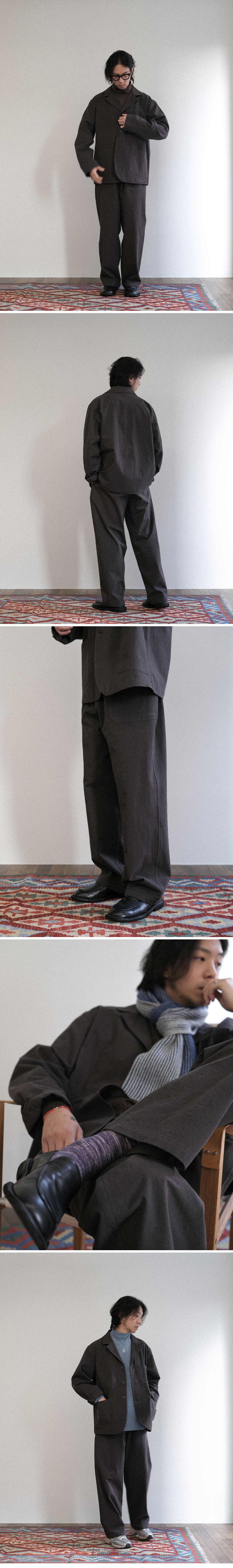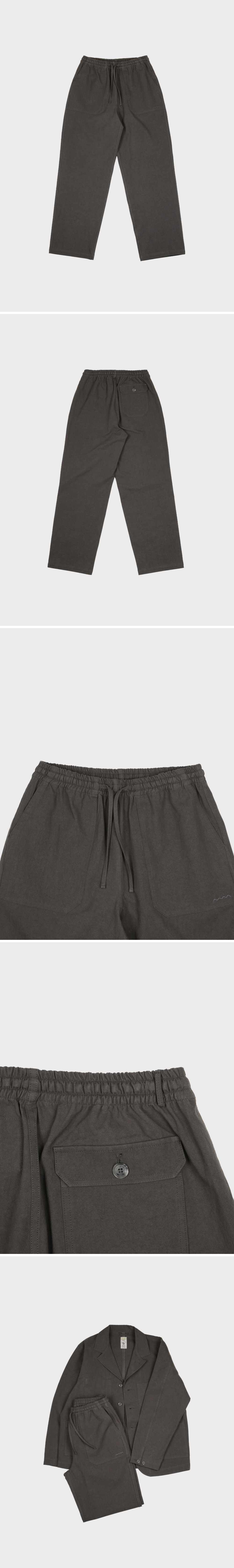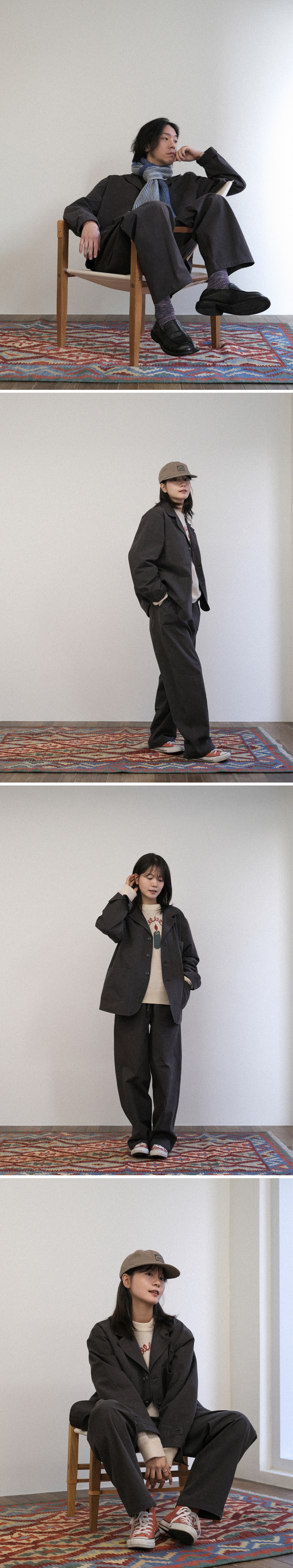- 일상과 격식 있는 자리 모두 자연스럽게 어울리는 셋업 팬츠 - 매트하고 탄탄한 면 원단에 바틱 염색으로 완성한 내추럴, 빈티지 무드 - 40수 두께감으로 다양한 계절에 착용 가능 - 포멀룩부터 캐주얼룩까지 자연스럽게 어우러지는 실루엣 - 편안한 착용감을 위한 허리 전체 밴딩 구조 - 앞포켓 시그니처 로고 자수와 뒷허리 고리 디테일 편안하게, 멋스럽게. Work and Walk ! 색상 차콜 (따뜻한 브라운 톤이 느껴지는 컬러) 모델 w 162 / 43 (하의 1) m 176 / 65 (하의 3)