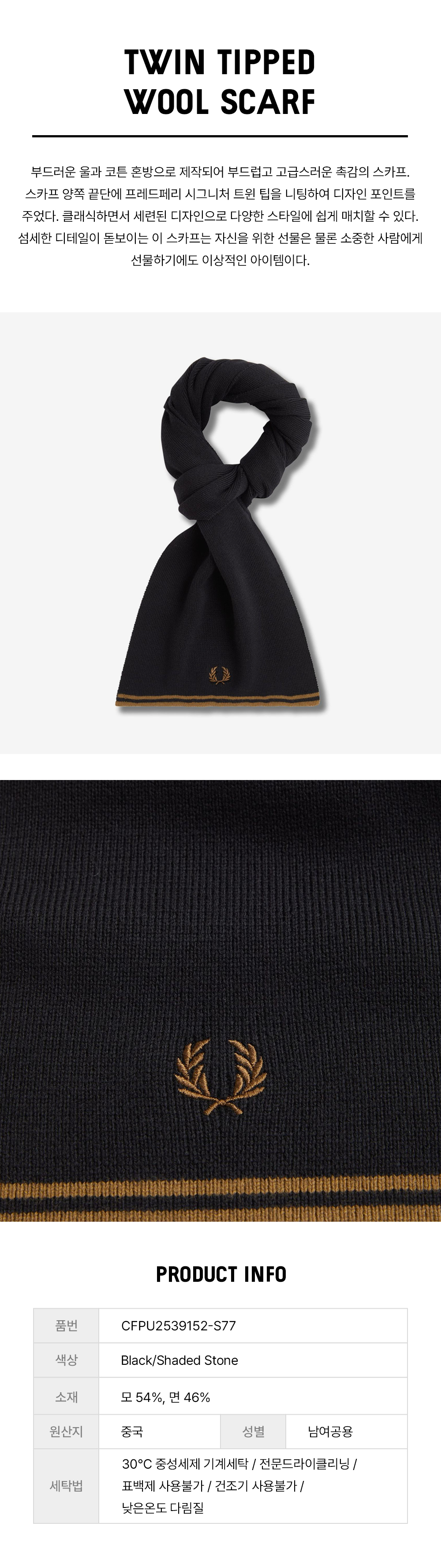 프레드 페리 트윈 팁 울 스카프 블랙 쉐이디드 스톤
