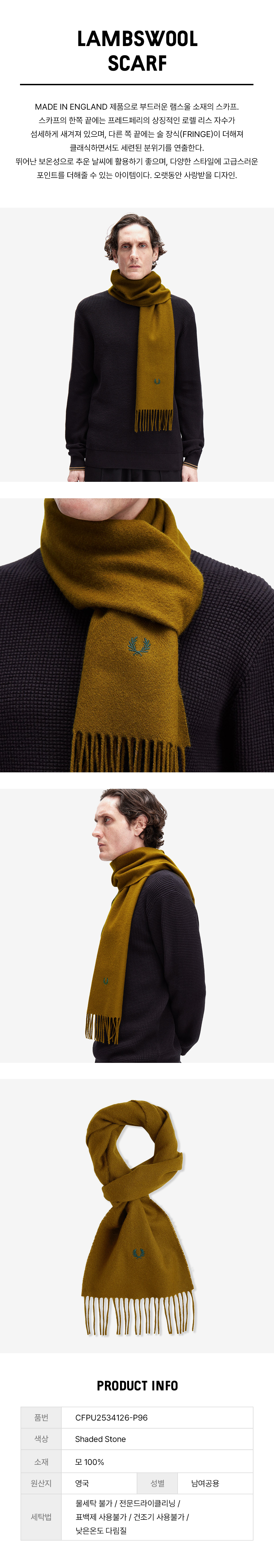 프레드 페리 램스울 스카프 쉐이디드스톤