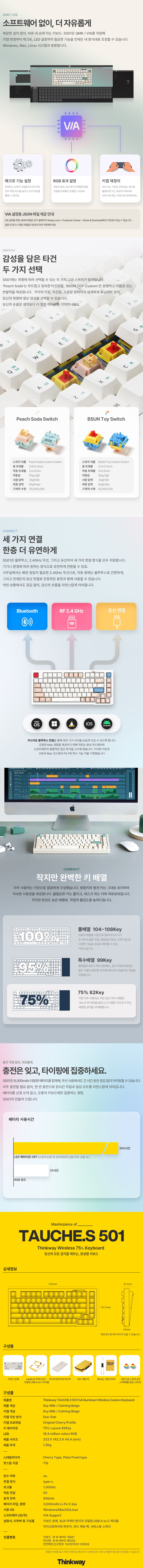 씽크웨이 토체S 501 풀알루미늄 유무선 75배열 82키 기계식 키보드 소이밀크 토이축