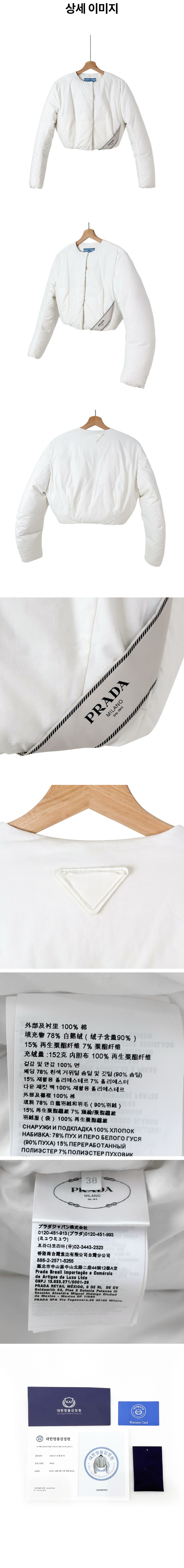 프라다 여성 삼각로고 코튼 크롭 다운 패딩 자켓 화이트