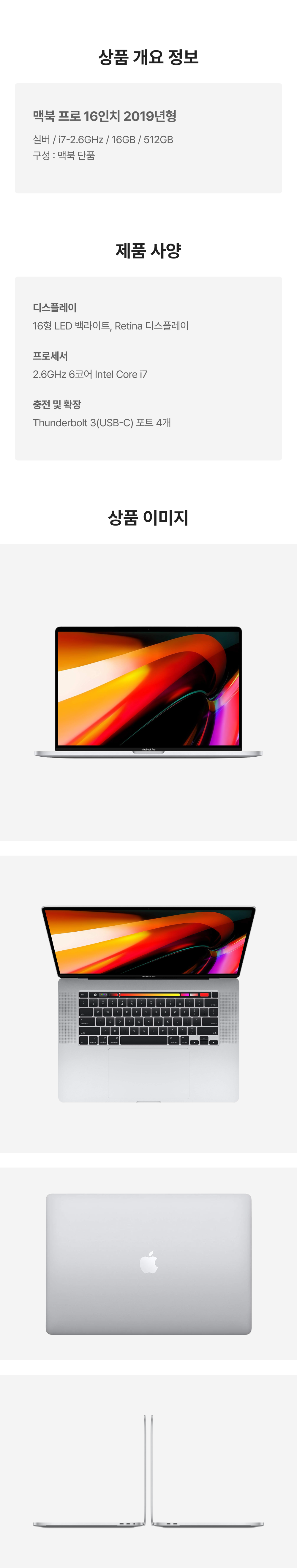 [S등급] 리퍼비시 2019 맥북 프로 16 i7-2.6GHz 512기가 SSD 16기가 램 실버