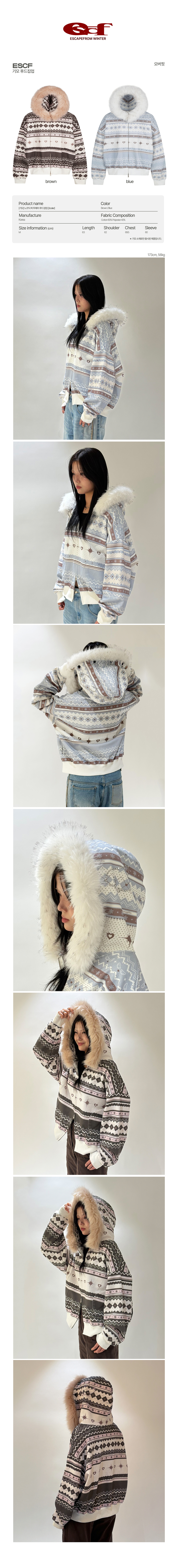 이스케이프프롬 노르딕 퍼 투웨이 후드집업 블루