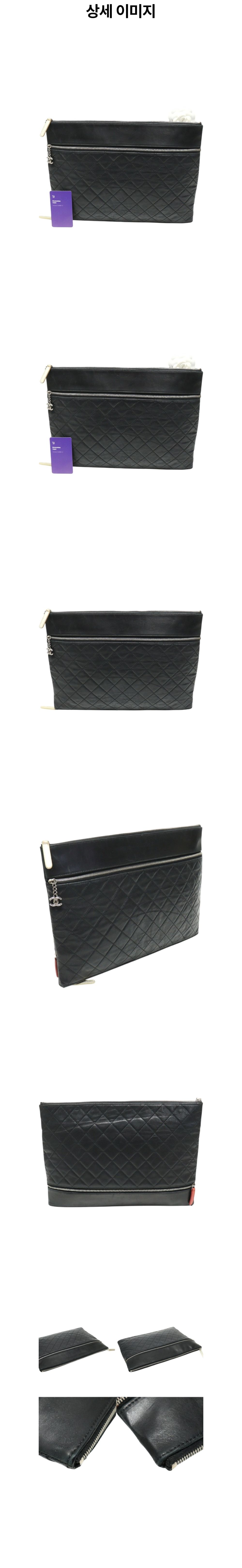 샤넬 블랙 램스킨 퀄팅 은장 샤넬 로고 지퍼 라지 클러치 (18번대)