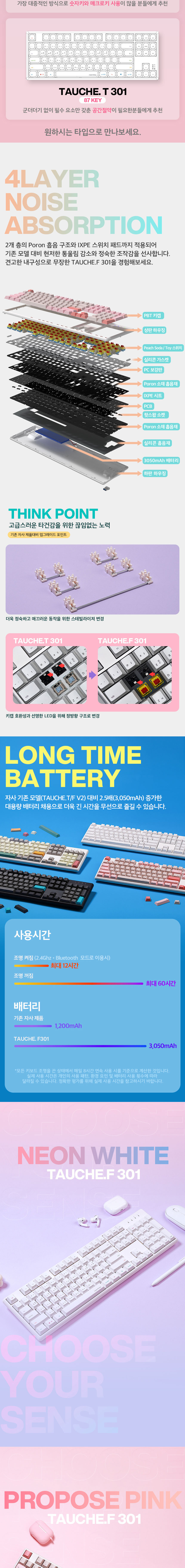[투명키캡 증정] ThinkWay TAUCHE.F 301 Keyboard Neon White BSUNTOY