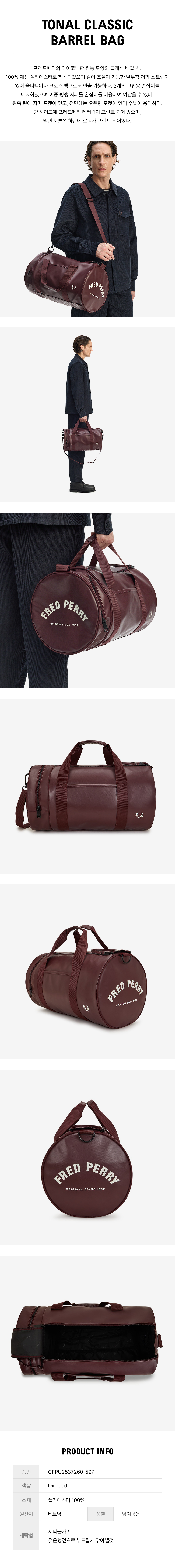 프레드 페리 토널 클래식 배럴 백 옥스블러드