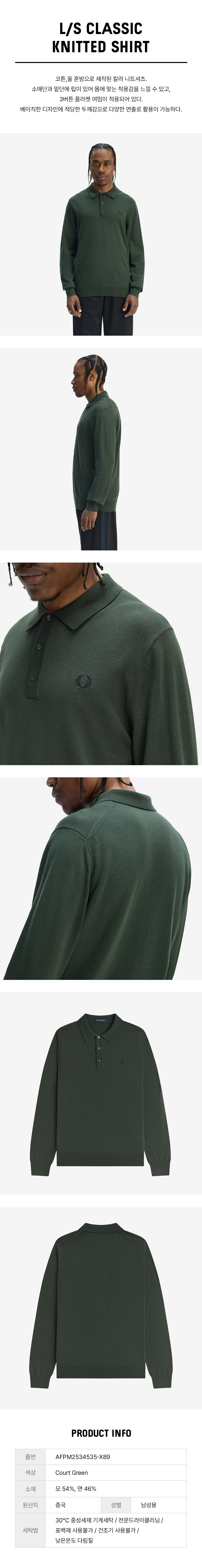 프레드 페리 롱 슬리브 클래식 니트 셔츠 코트 그린