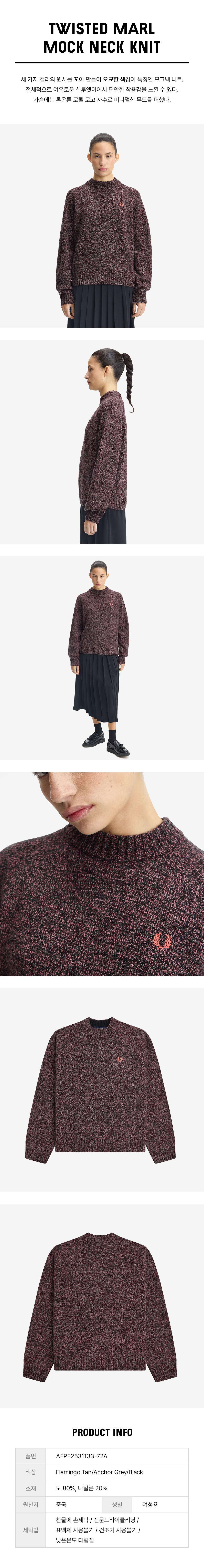 프레드 페리 우먼스 트위스트 말 모크 넥 니트 플라밍고 탄 앵커그레이 블랙