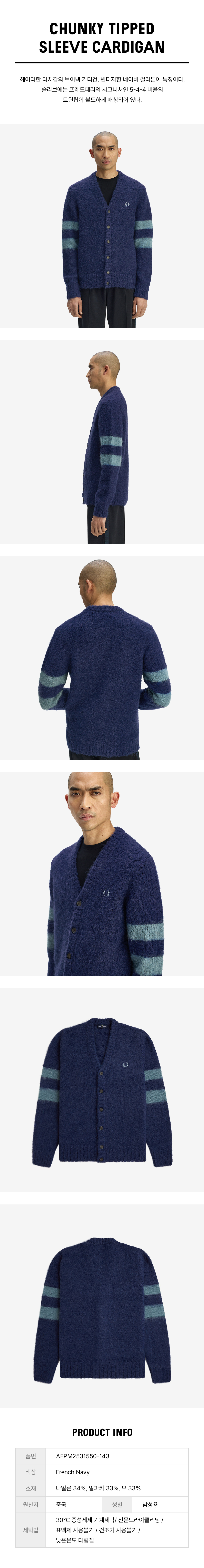 프레드 페리 청키 팁 슬리브 가디건 프렌치 네이비
